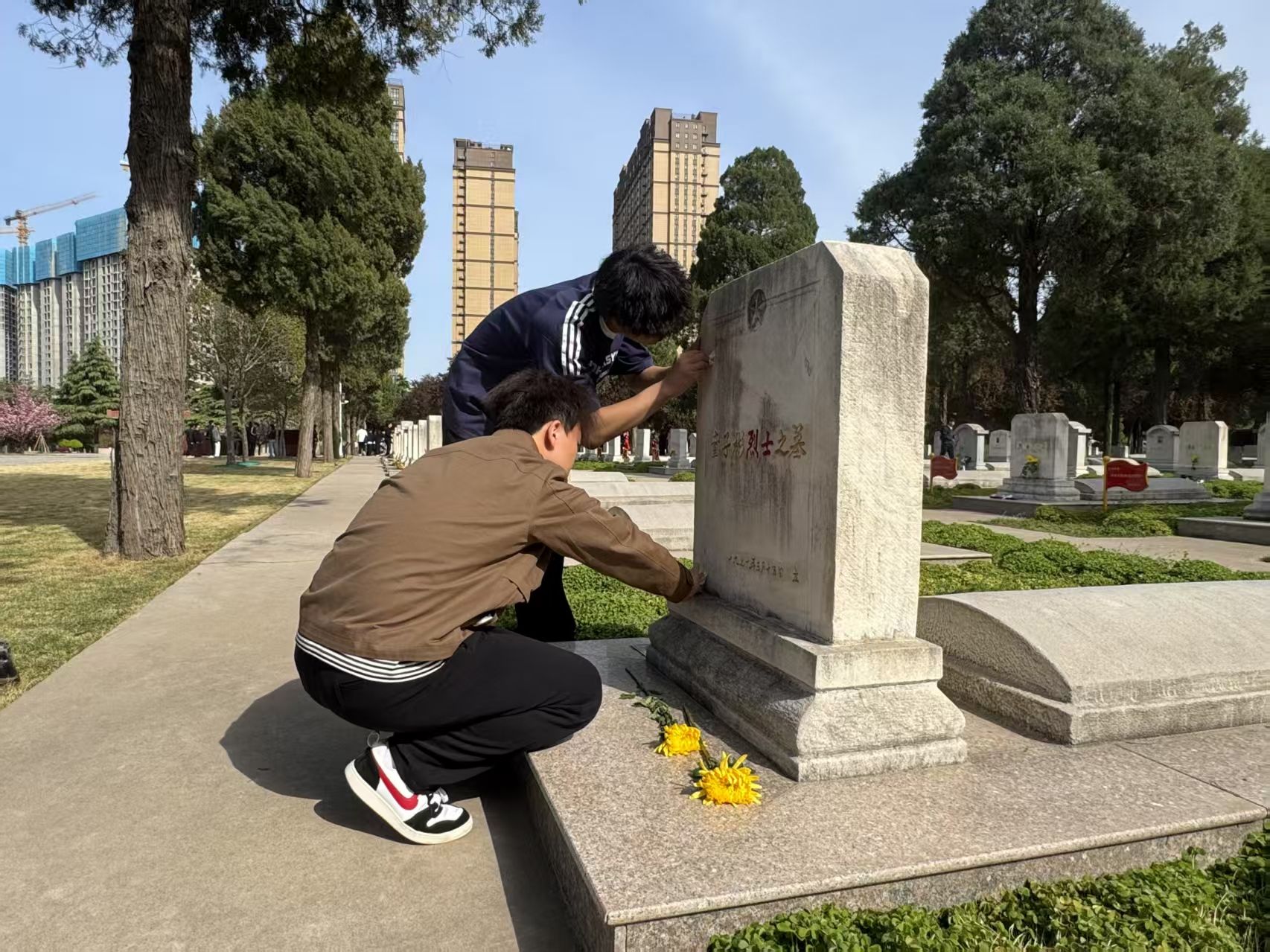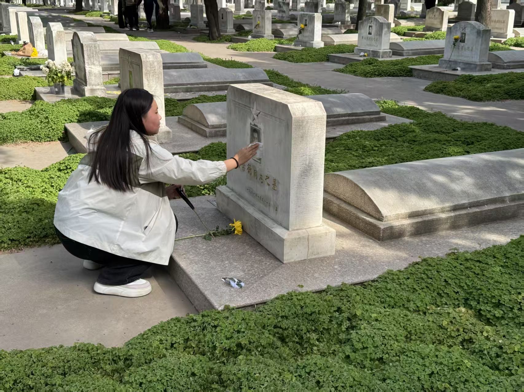 活动伊始,志愿者们在烈士祠前整齐列队,共同向烈士们默哀。现场气氛凝重,所有人神情肃穆,在静谧中寄托对先烈的无尽追思。默哀结束后,志愿者们分组行动,对烈士陵园内的道路、草坪、墓碑等区域进行细致清扫。在庄严肃穆的氛围中,志愿者们神情专注,用双手还原了陵园的整洁与庄严。清扫完毕后,志愿者们手捧鲜花,缓缓走到墓碑前,庄重地献上花束。娇艳的花朵在墓碑前绽放,象征着烈士们的精神永远鲜活,激励着后人不断前行。在活动过程中,志愿者们还深入了解了陵园内的历史背景和革命先烈的英勇事迹,烈士们为国家独立、民族解放而英勇献身的事迹深深触动着每一位大学生志愿者。他们或是驻足凝视墓碑上的文字,或是相互轻声交流着对烈士精神的感悟,眼中满是敬佩与感动。通过此次祭扫活动,志愿者们纷纷表示其是一次深刻的精神洗礼,作为新时代的大学生,我们肩负着实现中华民族伟大复兴的历史使命,一定要传承和弘扬先烈们的精神,努力学习,为国家的发展贡献自己的力量。