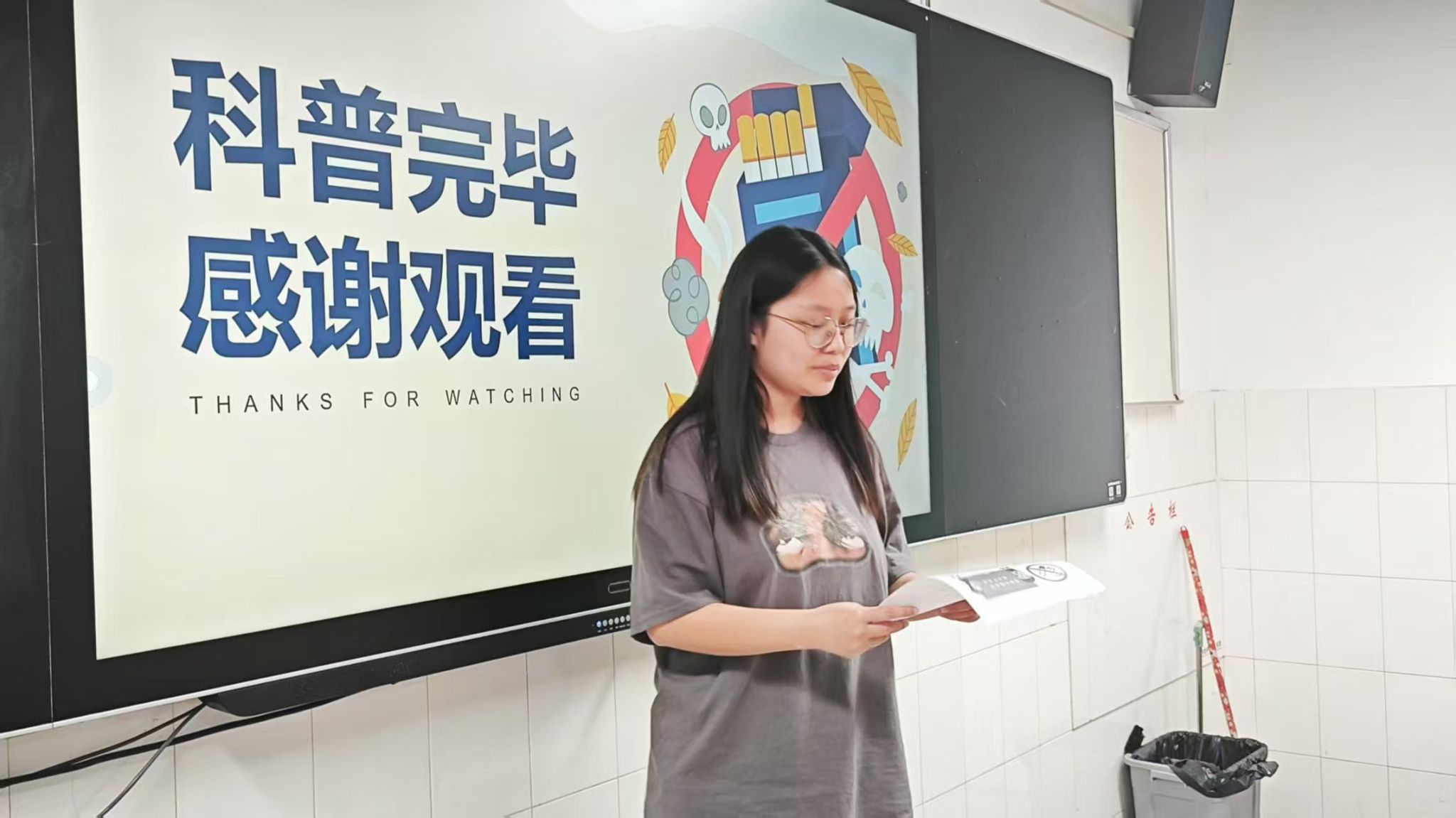 活动期间,志愿者们精心准备,通过制作精美且内容详实的PPT,生动形象地向同学们讲解了吸烟对人体肺部、心血管等多个系统的危害,以及二手烟对身边人群造成的不良影响。讲解结束后,志愿者组织同学们进行互动提问,并围绕“如何有效劝阻他人吸烟”“无烟环境对生活的积极意义”等话题展开热烈讨论。现场气氛活跃,同学们各抒己见。随后,主讲人走到同学们中间,面对面解答大家提出的疑问,进一步深化了同学们对无烟知识的理解。通过此次活动,同学们深刻感受到吸烟对健康的严重威胁,纷纷表示今后将以身作则,远离烟草,并积极向身边人宣传无烟理念,共同抵制吸烟行为。
