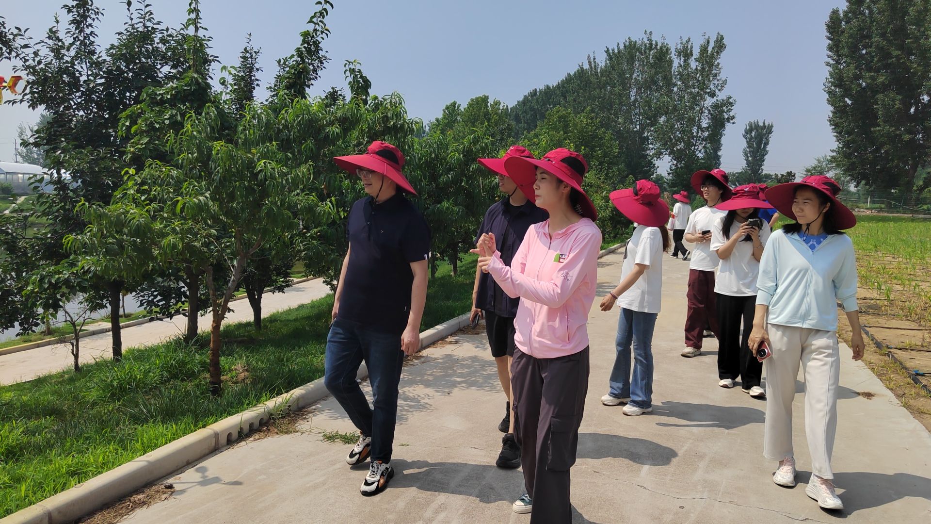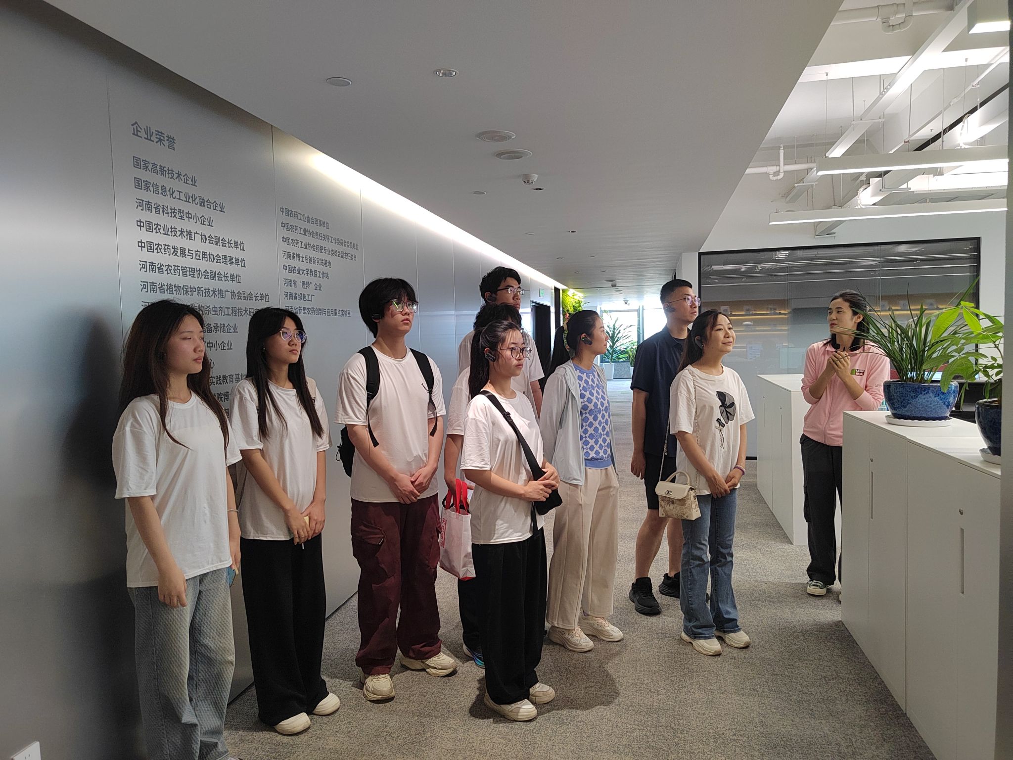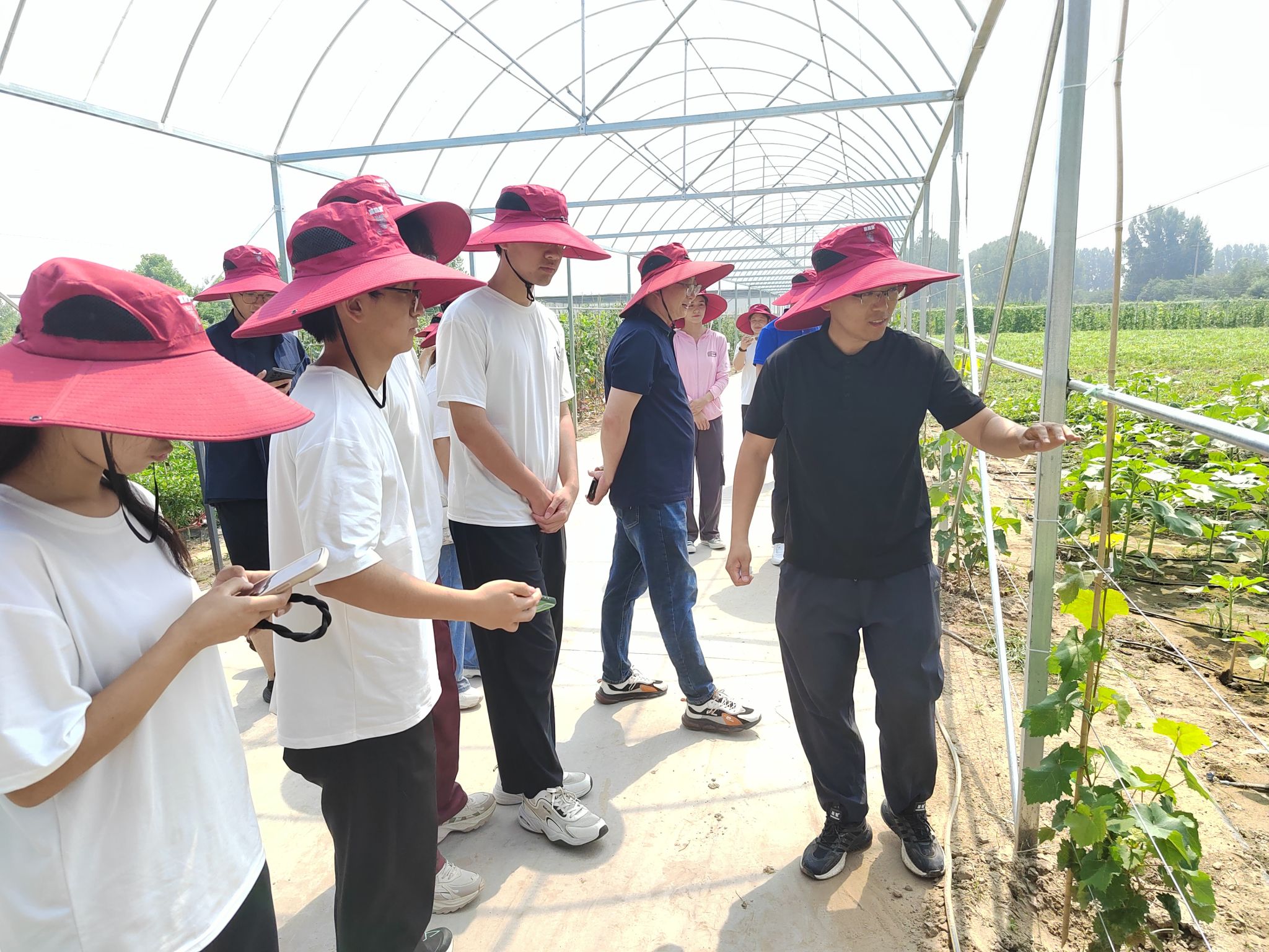 踏入勒夫农业科技的实践基地,同学们便投身到充满生机的田间地头。在蔬菜种植区,大家头戴遮阳帽,亲手参与作物养护、采摘,真切感受从田间到收获的农耕流程。弯腰除草、小心采收,每一项农事操作,都让同学们体会到农业生产的辛劳与不易,也直观认知到在农业科技赋能下,作物培育、生长的实际场景。随后,团队走进企业办公区。在讲解员的引导下,同学们逐步明晰了勒夫农业如何以科技为翼,深耕农业赛道。交流中,企业人员分享了农业科技产品研发、市场推广的经验,从精准施肥方案到助力农户增产的实践案例,大家看到了农业科技企业连接田间与市场的关键作用。在互动交流环节,同学们围绕农业产教融合、科技助农模式创新等问题,与企业负责人进行了深入探讨。从农业品牌打造到智慧农业的未来趋势,思维的碰撞拓宽了大家对现代农业产业链的认知,也让“科技赋能农业,创新驱动发展”的理念,深深植根于同学们心中。