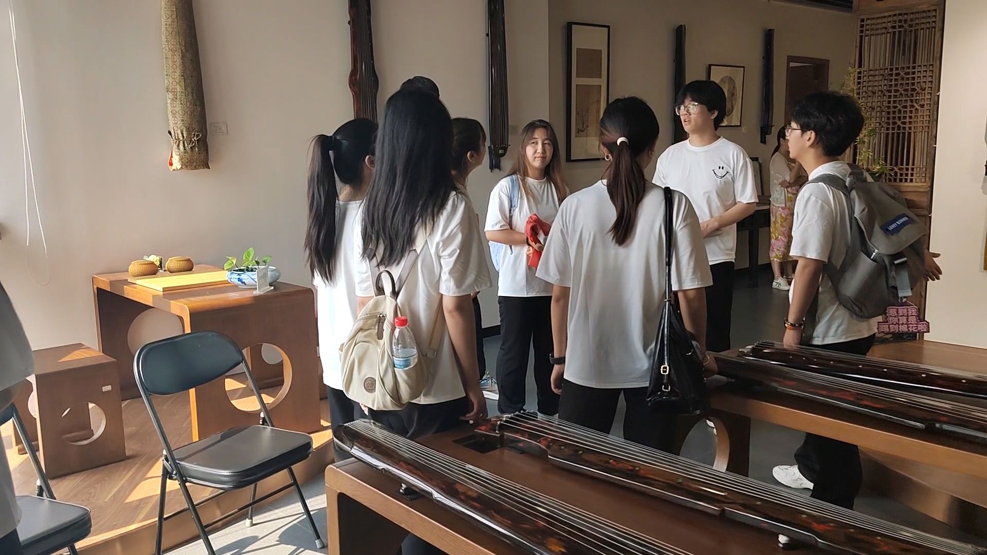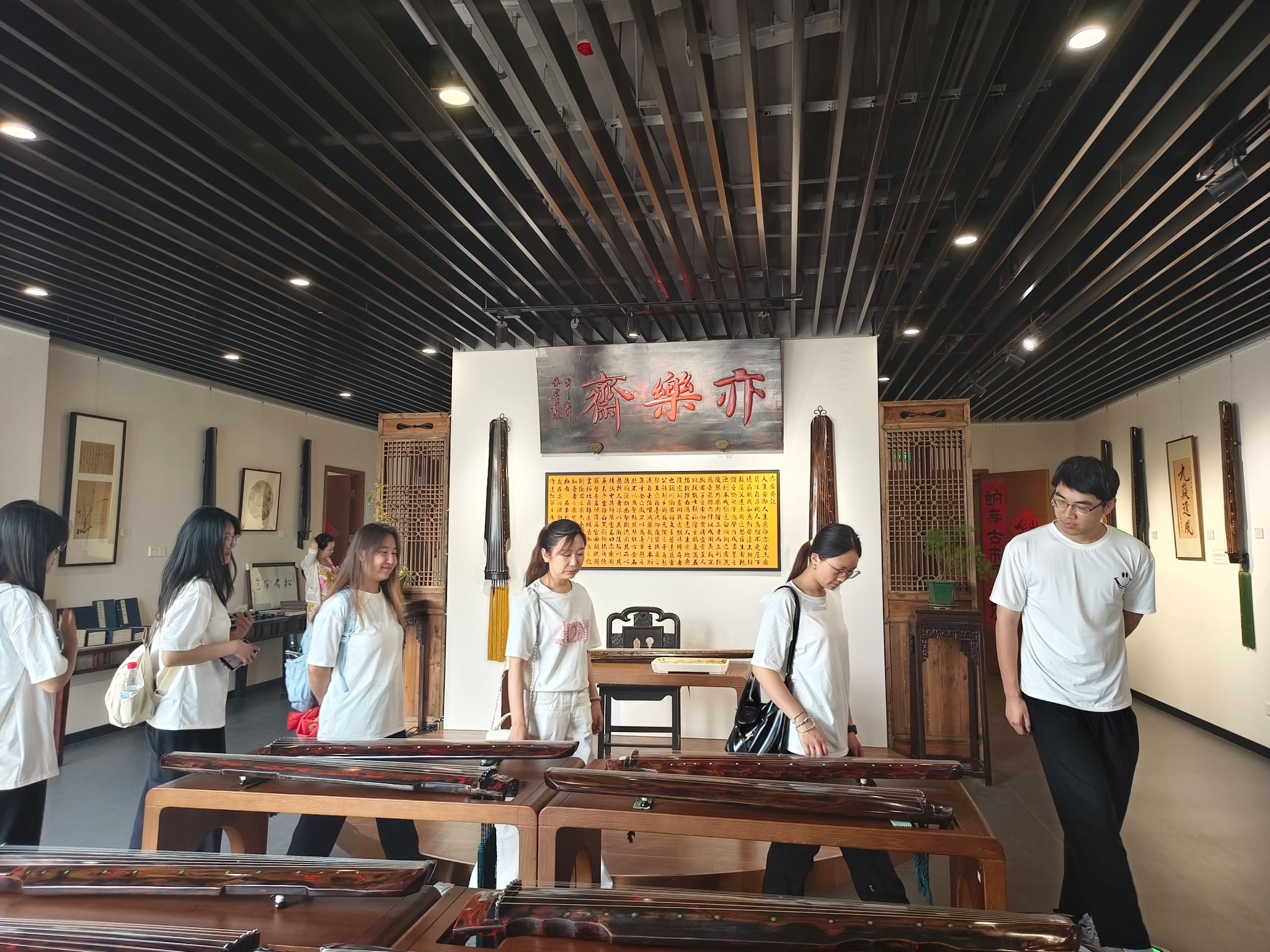 在古琴体验展示馆中,学生们在专业老师的引领下,详细了解了古琴的历史渊源、制作工艺及演奏技巧。通过老师生动的讲解,学生们对古琴文化有了更深刻的体验,了解到古琴在古代是文人墨客抒发情感、寄托志向的重要载体,也承载着千年的文化积淀。随后,社会实践团队来到了三星堆美术馆,在美术馆内,学生们自行参观,通过展品旁的图文介绍,深入了解了每一件文物的故事。从精美的青铜面具到独特的金杖,每一件展品都诉说着中华文明的辉煌与神秘。他们细细观赏,认真思考,被中华文明的独特魅力深深吸引。通过参观两个展馆,学生们了解到了古琴这一非物质文化遗产瑰宝所蕴含的深厚文化内涵,以及三星堆文化展现出的独特历史风貌,对中华文化的多元性有了更深刻的认识。他们纷纷表示,作为新时代青年,应当肩负起传承和弘扬传统文化的责任,积极投身到非物质文化遗产保护与文化传承的实践中,让古老的文化在新时代焕发出新的生机与活力。