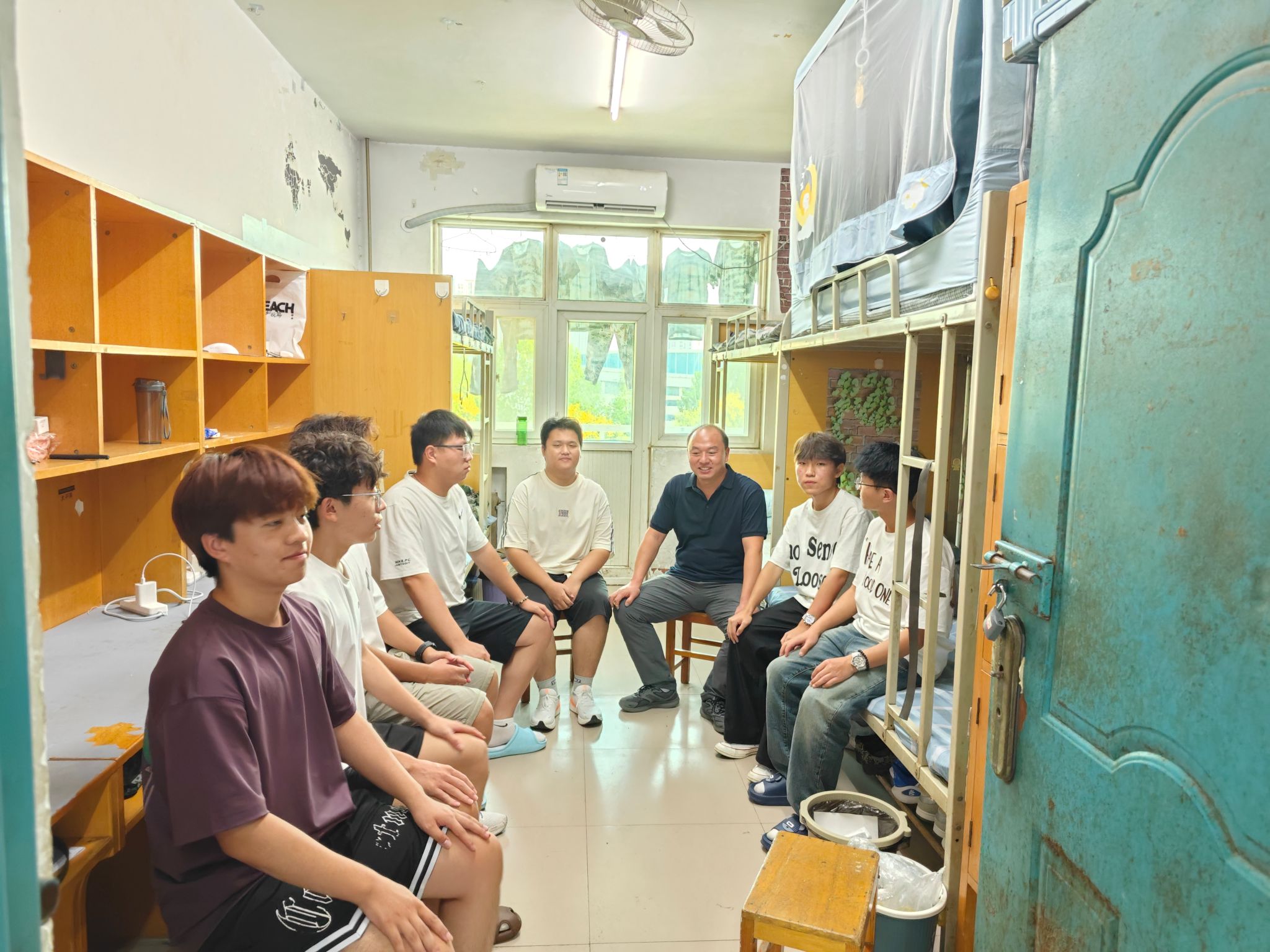 走访过程中,领导与老师们细致查看宿舍设施与环境卫生,耐心询问同学们的生活细节。“家乡是哪里?”“住宿和饮食还习惯吗?”“有没有遇到什么困难?” 一句句亲切的问候瞬间拉近了师生之间的距离。领导们仔细查看住宿环境,关切询问新生的报到流程是否顺利、行李是否安置妥当、生活需求是否得到满足。院领导勉励新生要尽快转变角色,珍惜时光,夯实专业基础,实现全面发展。 这份关怀让新生们倍感温暖与鼓舞,大家纷纷表示将勤奋学习,不负期望。“宿舍是大学的‘第一个家’,要学会与室友和睦相处、互帮互助,遇到困难及时向辅导员和班主任老师沟通。 学院永远是大家坚实的后盾。”学院党委书记王国辉的叮嘱让新生们感受到了家的温暖。