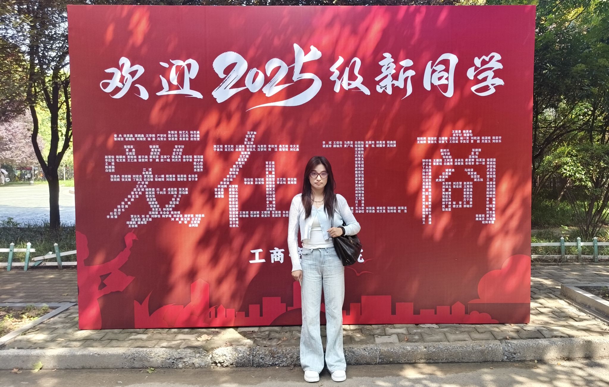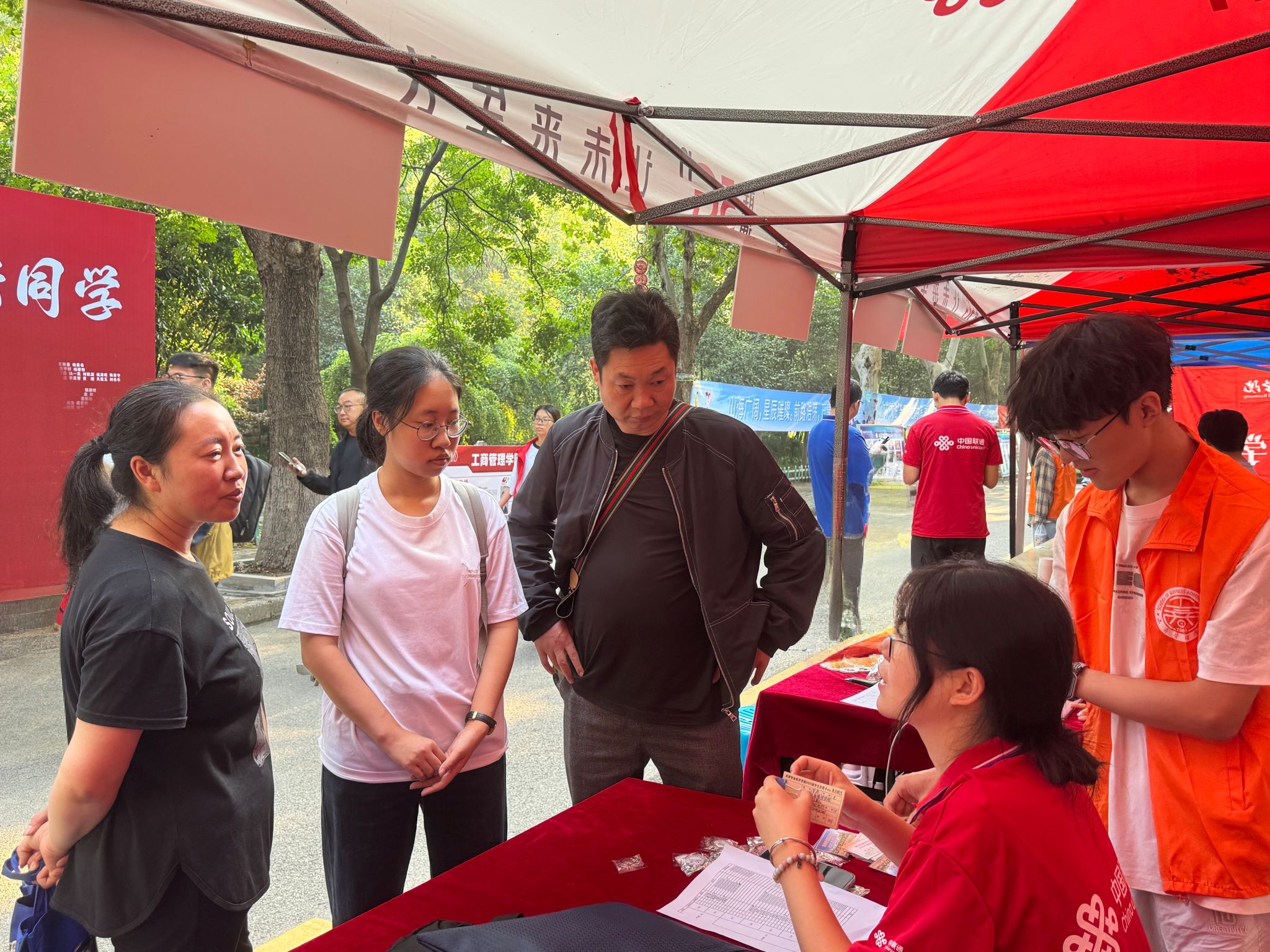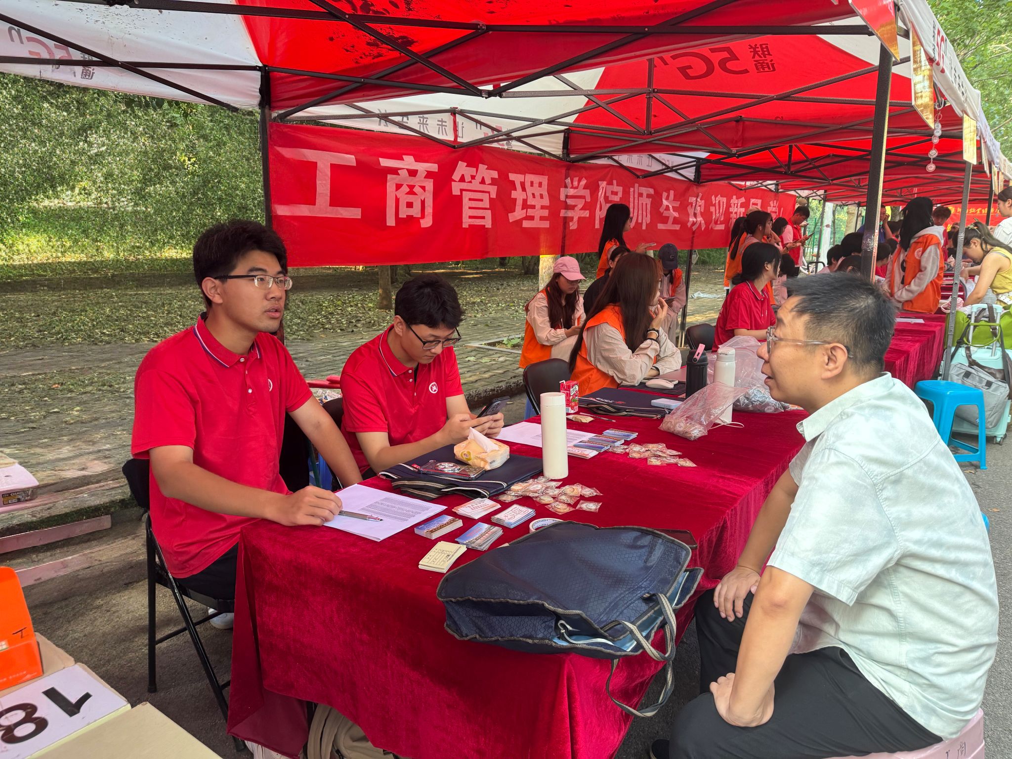 迎新现场处处洋溢着温情。志愿者们分布在校门口、林荫大道、宿舍楼、报到处等关键点位,从引导新生入校、搬运行李,到协助完成信息登记、领取物资,全程“一对一”贴心服务。报到处内,辅导员、班主任老师与新生班级助理分工明确,有序为新生办理入学手续,仔细核对报到信息,并反复叮嘱校园安全、宿舍用电等注意事项。今年,现场还特别设置了写有新生姓名的迎新展板,让新生充分感受到学院对他们到来的重视和期待