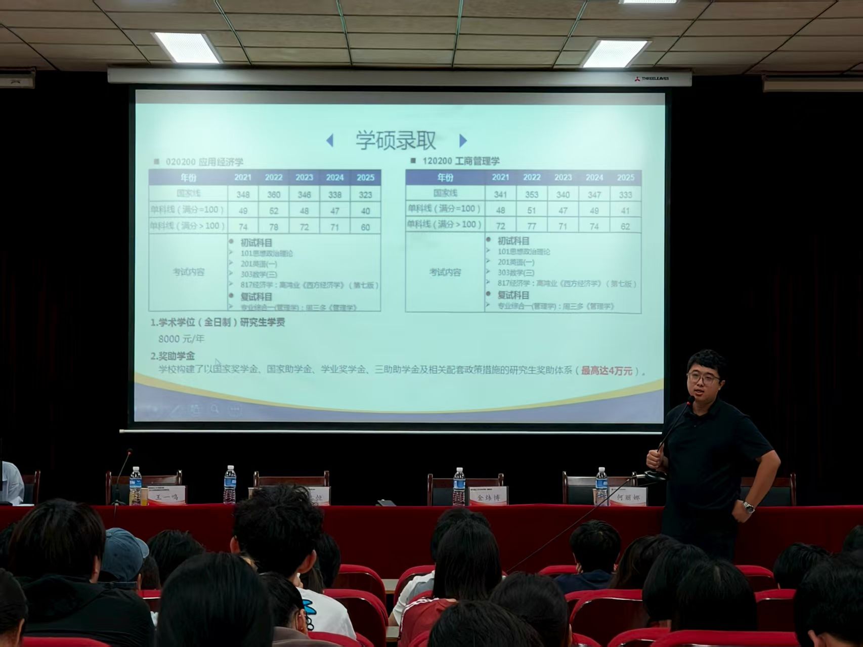 为深化院际交流、推动研究生教育资源共享与优势互补,2025年9月11日,青岛理工大学商学院副院长金炜博率团队赴WilliamHill中文,开展研究生招生政策宣讲及学科建设交流活动。WilliamHill中文副院长何丽娜(主持行政工作)、党委副书记詹珅、教师代表及百余名本科生参与本次活动。