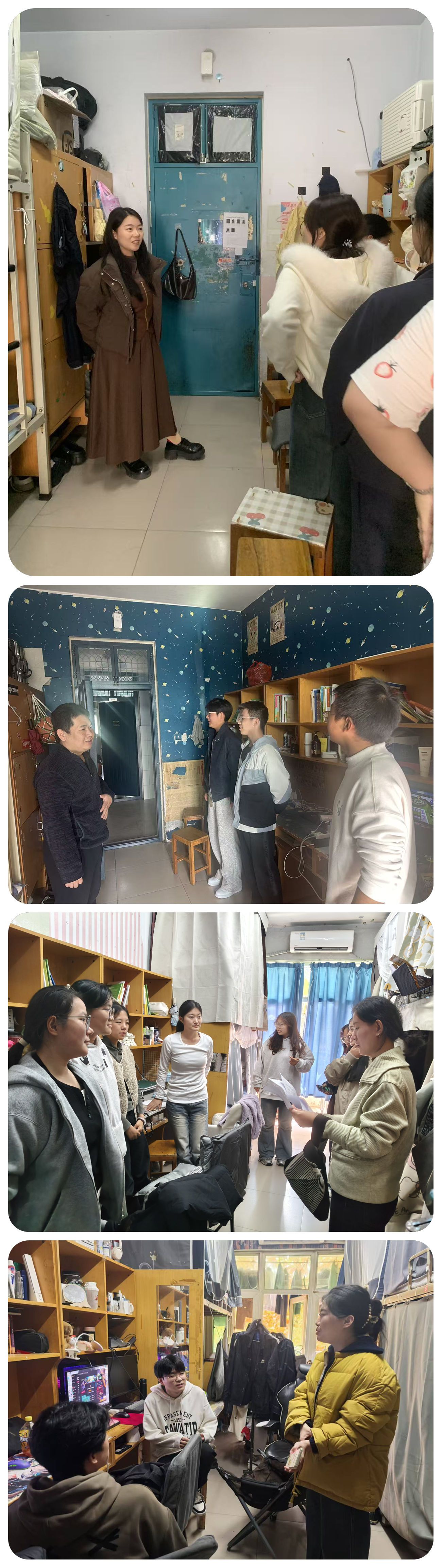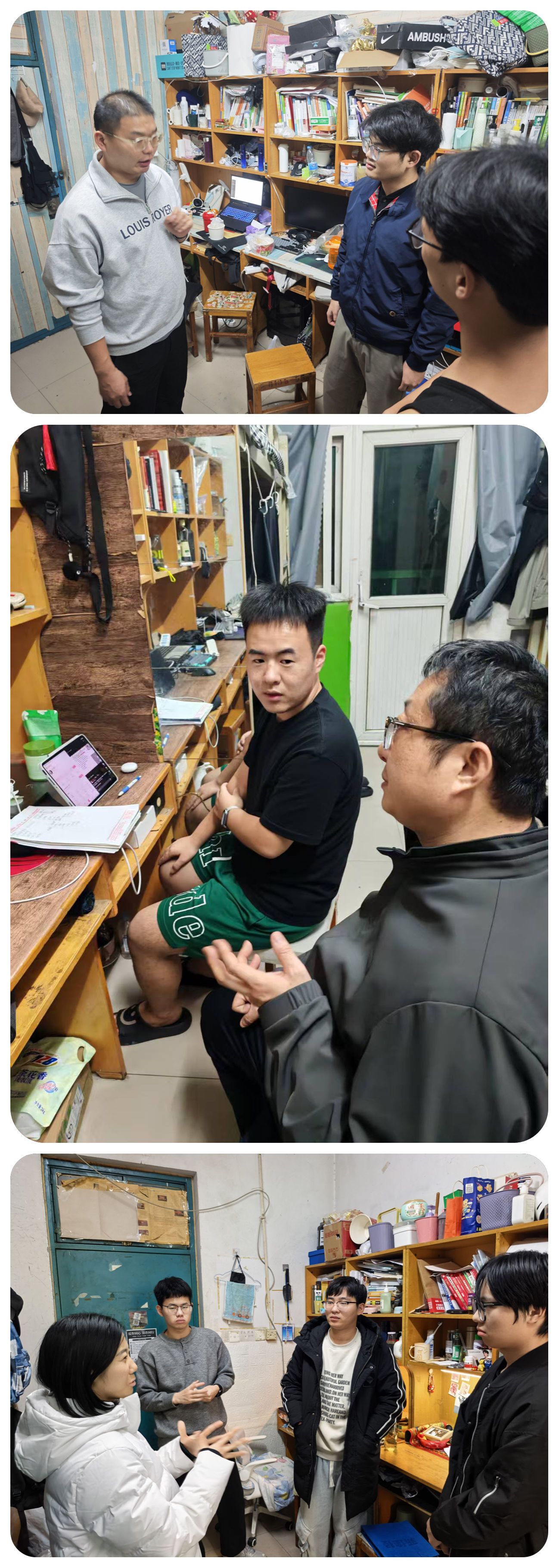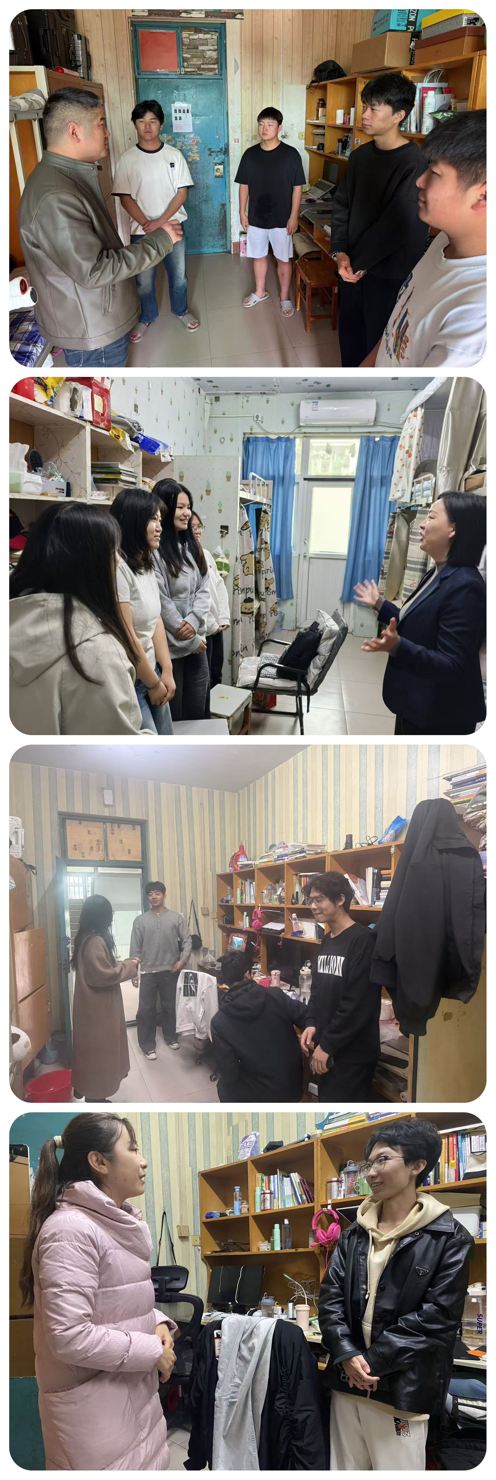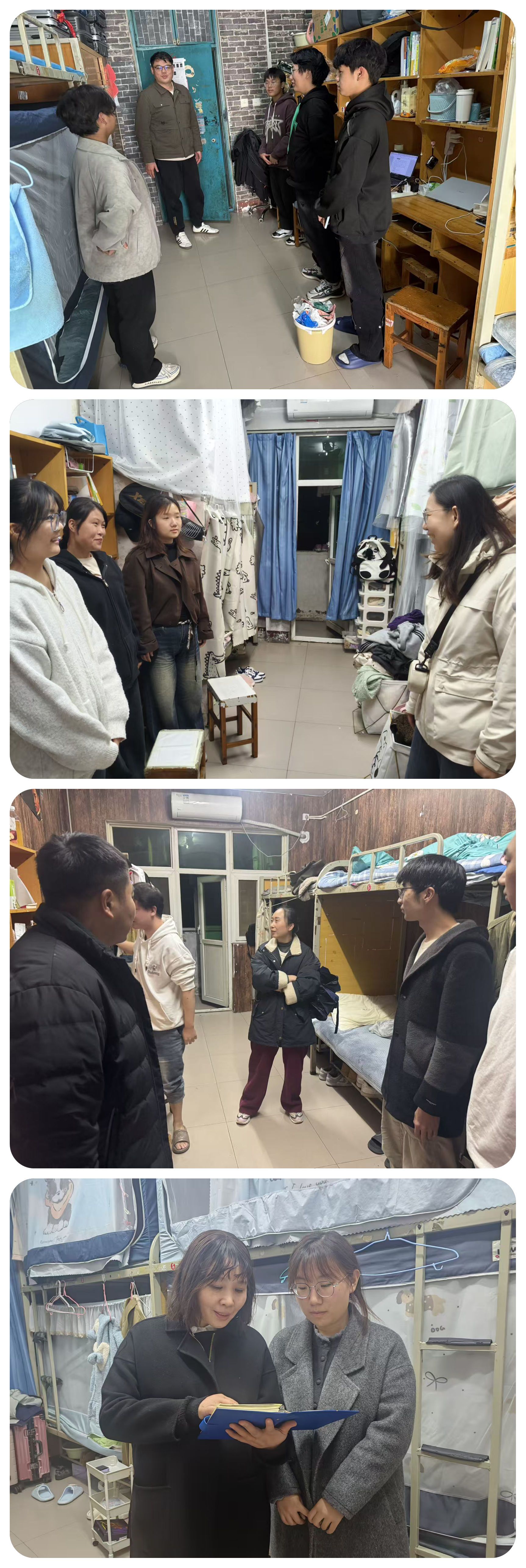 为深入贯彻落实立德树人根本任务,推动“三全育人”理念走深走实,落实校党委学工部文明养成主题教育,学院于11月4日-8 组织全体班主任、辅导员深入学生宿舍,开展“文明养成·生涯引航·安全护航”专项行动,通过“面对面”交流、“手把手”指导,将文明素养养成、思想政治教育、职业规划引导与安全教育、网络安全等有机融合,为学生的成长成才筑牢根基。