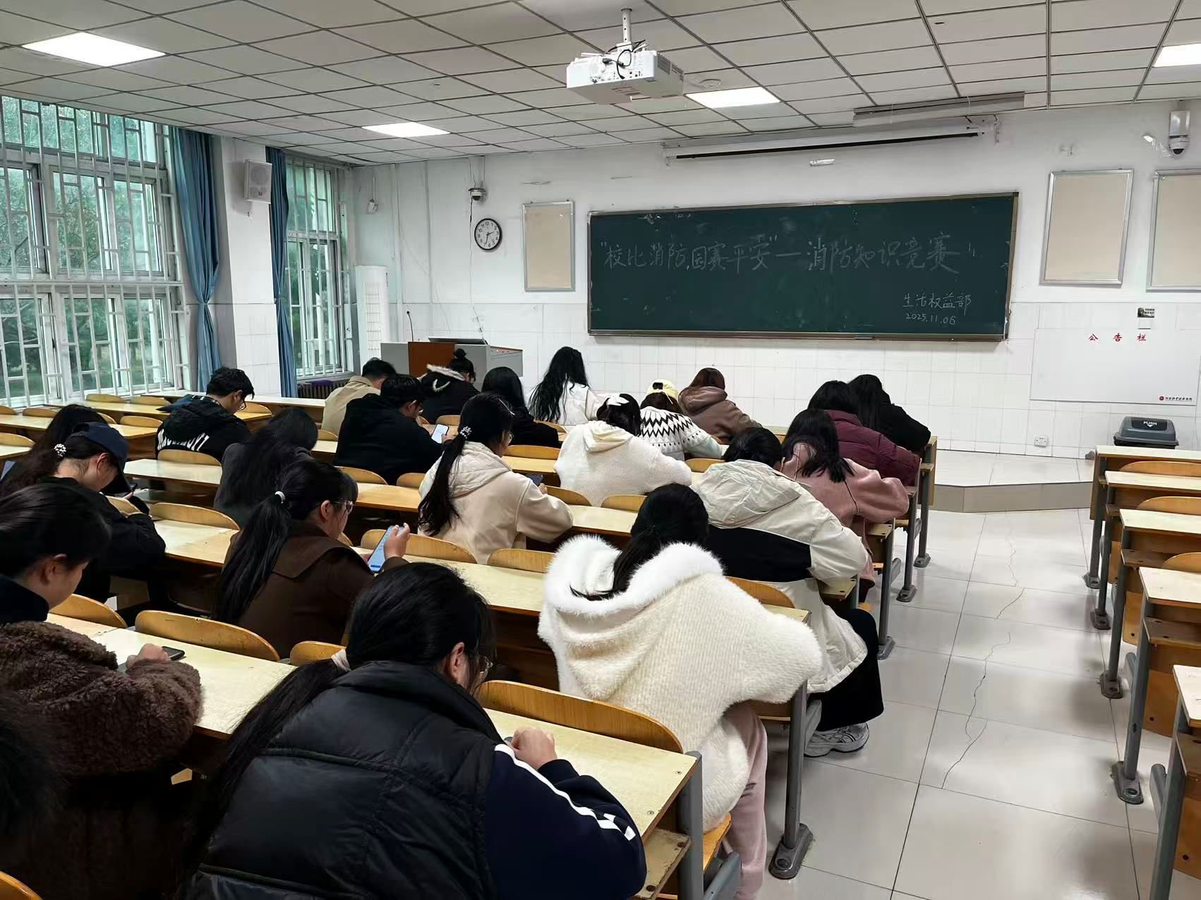 此次竞赛以手机为答题平台,题目经过精心打磨,涵盖火灾预防、火灾扑救、逃生自救等多个方面的消防知识。同学们凭借扎实的消防基础知识和敏锐的分析能力,从容应对一道道颇具挑战性的题目,充分彰显了过硬的消防知识储备与临场应变能力。答题环节结束后,竞赛负责人秉持着公平、公正、公开的原则,对同学们的答题成绩进行了认真细致的评审。这不仅是对同学们积极学习消防知识的认可和鼓励,更是对他们在消防安全方面所付出努力的肯定。参与同学纷纷表示,通过此次答题,不仅系统巩固了消防理论知识,更在模拟场景类题目中学会了如何快速应对初期火情、正确使用灭火器等实用技能,切实提升了应对火灾隐患的实际能力。