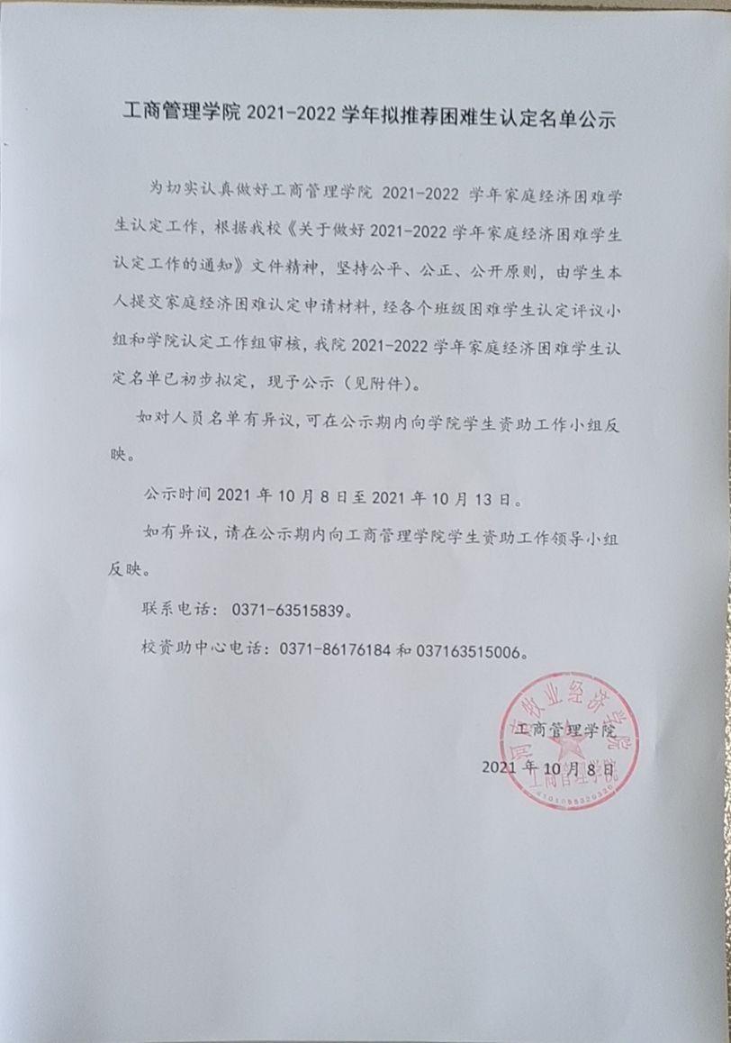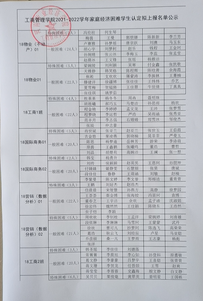 WilliamHill中文2021-2022学年拟推荐困难生认定名单公示