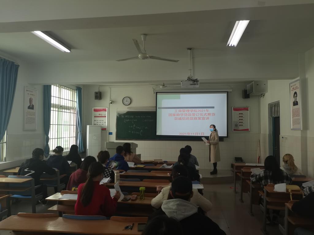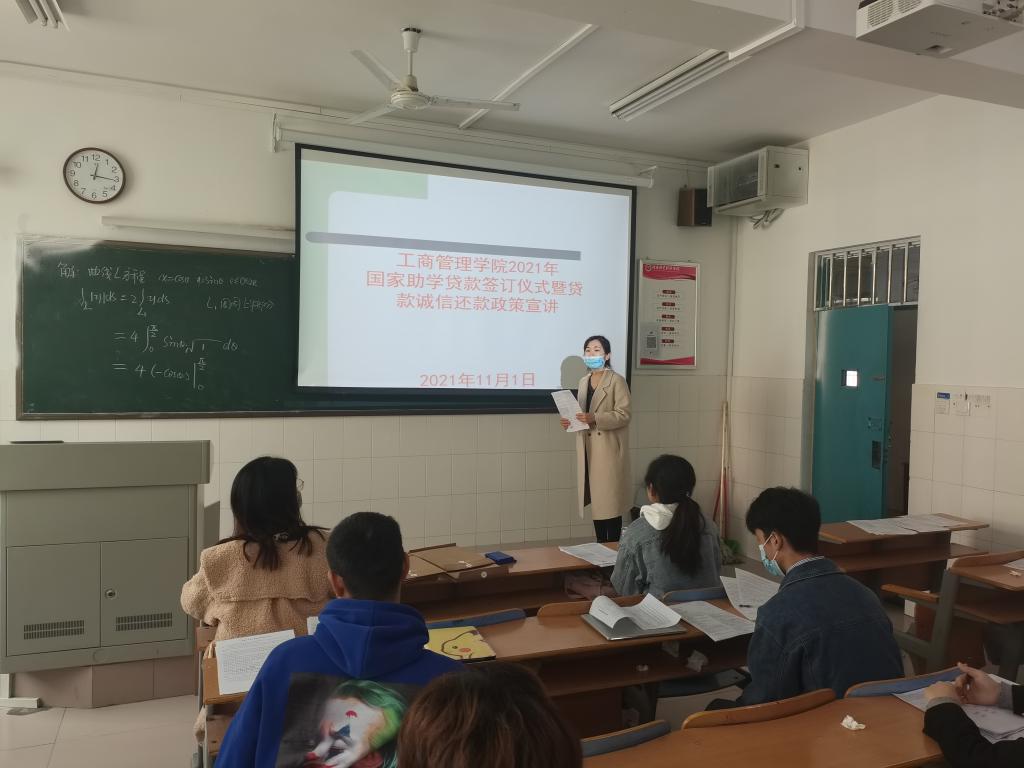 为宣传国家助学贷款相关政策,增强我院学生诚信意识,WilliamHill中文于2021年11月4日中午12:10在教学楼A410教室举行2021年度国家助学贷款合同签订暨贷款诚信还款宣讲会。学院负责贷款工作的席亚芳老师和申请2021年国家助学贷款的本科生、专科生参加了此次会议。