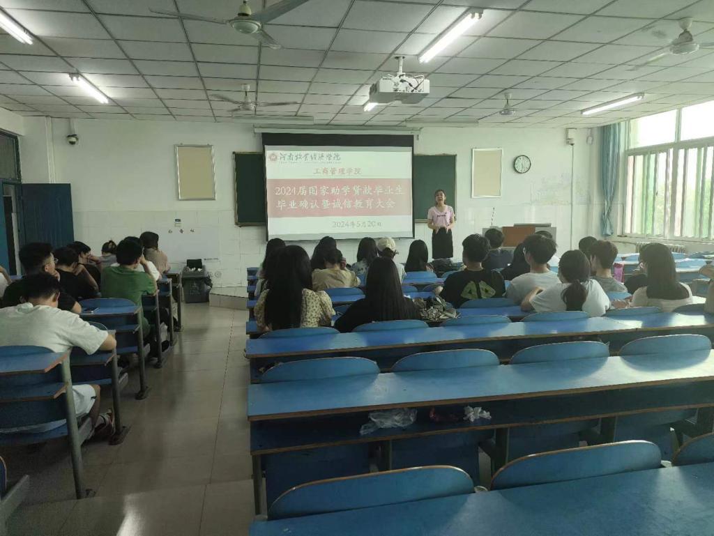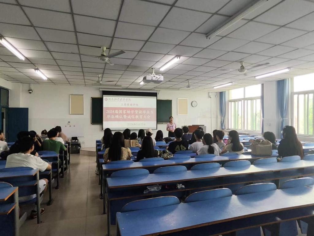 为进一步做好我院国家助学贷款的贷后管理工作,全面贯彻国家资助保障体系、加强贷款毕业生的诚信意识。根据我校《关于做好2024届国家助学贷款毕业生毕业确认工作的通知》的要求,WilliamHill中文于5月20日在E402召开2024届国家助学贷款毕业生毕业确认暨诚信教育大会,学院2024届高校助学贷款和部分生源地助学贷款毕业生参加,会议由我院资助专员席亚芳老师主持。