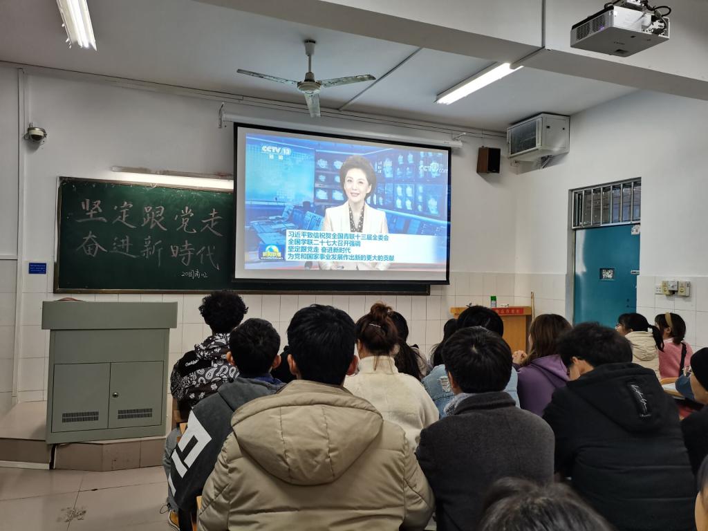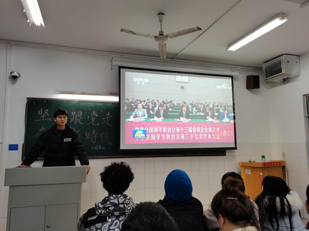 活动伊始,主持人介绍习近平总书记致全国青联十三届全委会和全国学联二十七大的贺信,学习全国青联十三届全委会、全国学联二十七大会议精神的主要内容,充分调动同学们对学习“坚定跟党走奋进新时代”团课的积极性。接着,在主持人的带领下通过广泛动员,使全体同学认真学习了坚定理想信念,矢志艰苦奋斗的精神。习近平总书记指出,经过全党全国各族人民团结奋斗,我们即将夺取全面建成小康社会伟大胜利,踏上实现第二个百年奋斗目标的新征程。我国广大青年要坚定理想信念,培育高尚品格,练就过硬本领,勇于创新创造,矢志艰苦奋斗,同亿万人民一道,在矢志奋斗中谱写新时代的青春之歌。青年一代当自强,作为青年人的我们,要不断提高自身的政治理论水平,塑造自身文化知识和专业知识水平,练就过硬的本领,坚持奋斗,保持拼搏奋进的姿态,展现当代中国青年的担当精神,为中华民族伟大复兴建设添砖加瓦。