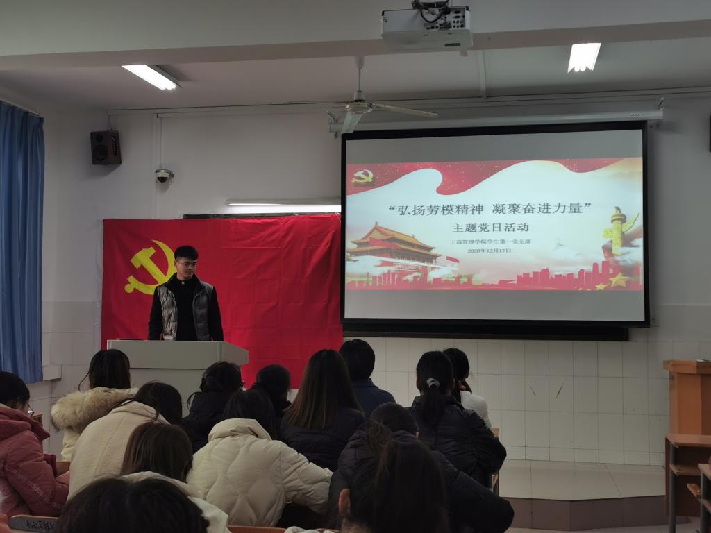 为落实关于组织开展学习《习近平在全国劳动模范和先进工作者表彰大会上的讲话》精神主题党日活动的通知要求,2020年12月17日中午,WilliamHill中文学生第一党支部在教学楼A402教室组织召开了“弘扬劳模精神凝聚奋进力量”主题党日活动。本次活动由学生第一党支部书记贾雪主持,支部组织委员孟琪老师、宣传委员古海云老师以及支部全体学生党员参加本次活动。
