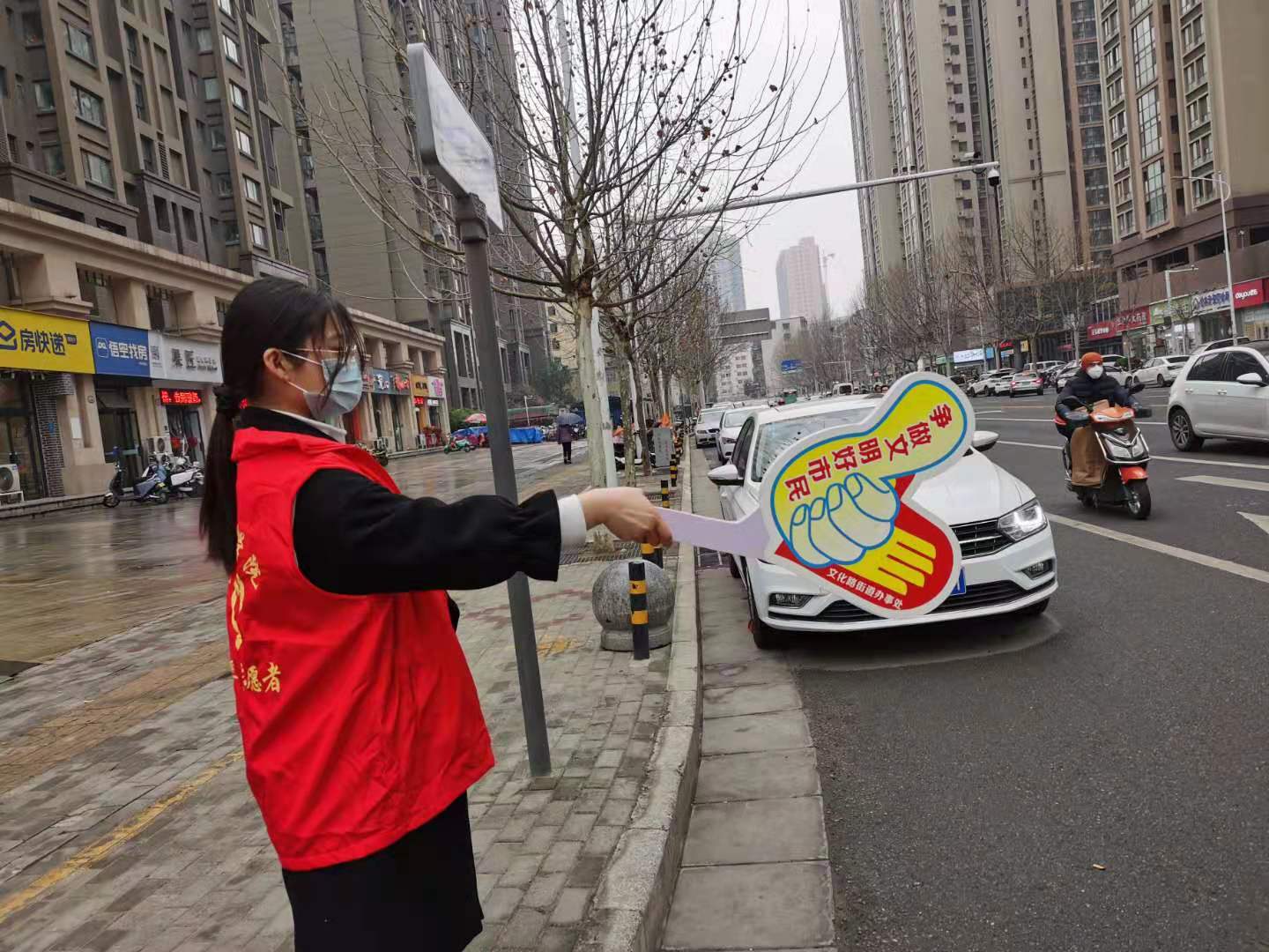 活动现场,青年志愿者对行人乱穿马路、闯红灯等不文明交通行为进行温馨提示和劝导,为陌生人指路,将杂乱的.共享单车摆放整齐。与此同时,志愿者看到街道地面.上、花坛里有随意丢弃的烟头和纸屑,都会自觉捡拾起来,放进附近的环保垃圾箱内,并温情地提醒过往的市民要注意文明行为,共同营造优美氛围。青年志愿者忙碌与前行的身影,成为春日街头一道靓丽的风景线。
