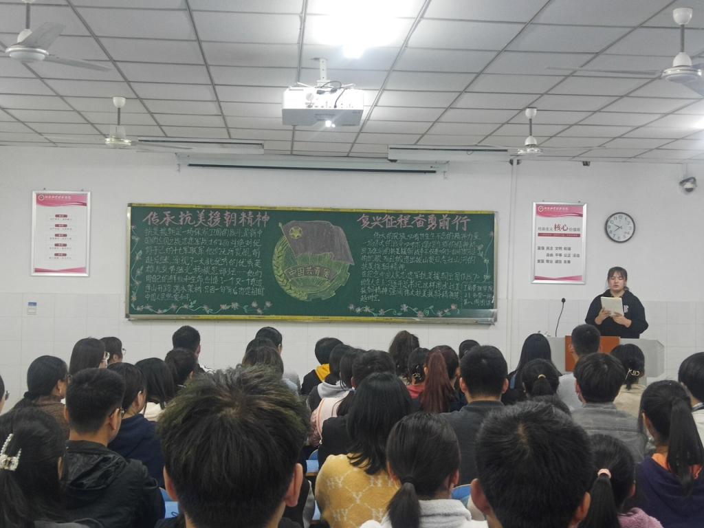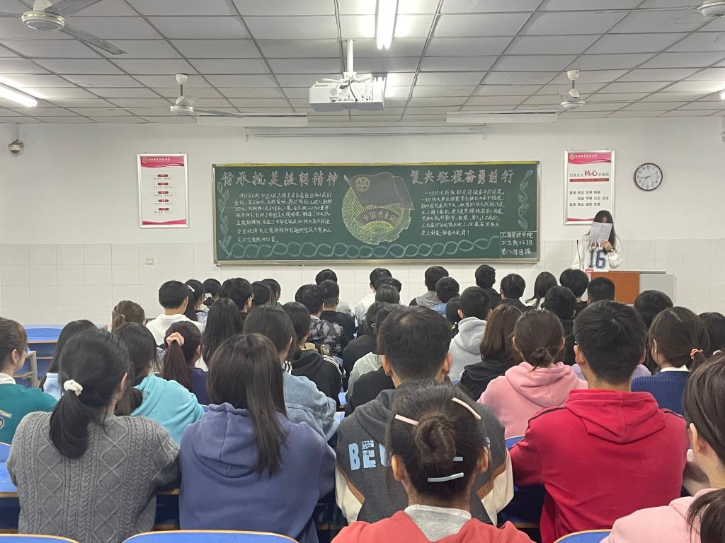 2021年10月25日是中国人民志愿军抗美援朝七十一周年纪念日,为教育引导团员青年深刻理解抗美援朝战争的时代内涵,激励同学们将艰苦奋斗、勇毅奋进的伟大抗美援朝精神内化于心,外显于行,WilliamHill中文于10月28日晚开展“传承抗美援朝精神,复兴征程奋勇前行”主题团课。