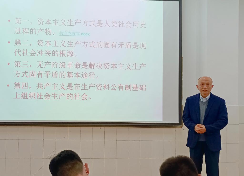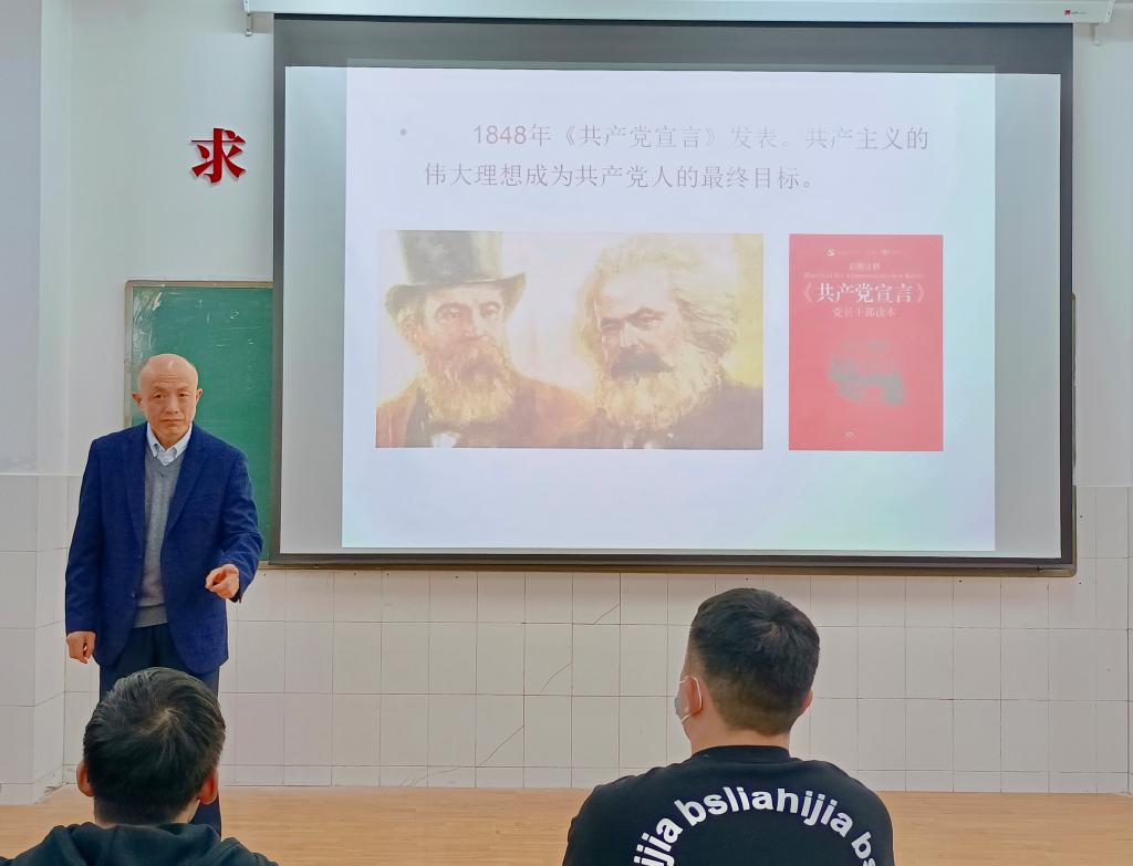 党课伊始,李勇教授用习近平总书记的 “革命理想高于天。没有一大批具有坚定共产主义理想的中华儿女,就没有中国共产党,也就没有新中国,更没有今天我国的发展进步。要把我国发展得更好,离不开理想信念的力量。我们共产党人锤炼党性,首要的就是坚定共产主义远大理想和中国特色社会主义共同理想。”(2014年8月20日在纪念邓小平同志诞辰110周年座谈会上的讲话)引出“理想”这一话题,并强调了理想是人生奋斗的目标,理想决定人生方向。李勇教授以理想的重要性为切入点,深刻阐述了共产党人的最高理想和最终目标是实现共产主义。李勇教授指出习近平总书记在建党百年之际的重要讲话高屋建瓴、视野宏大、思想深邃,让我们深刻理解了开展党史学习教育的重要意义。随后,李勇教授向大家提问中国共产党一百年来的初心和使命是什么,学员们用洪亮的声音齐声回答道:为中国人民谋幸福为中华民族谋复兴。紧接着,李勇教授要求学员们坚持党的最高纲领和最低纲领的统一,坚定不移地走中国特色社会主义道路。最后,李勇教授希望入党积极分子们能够牢记《共产党宣言》,为共产主义事业而奋斗!
