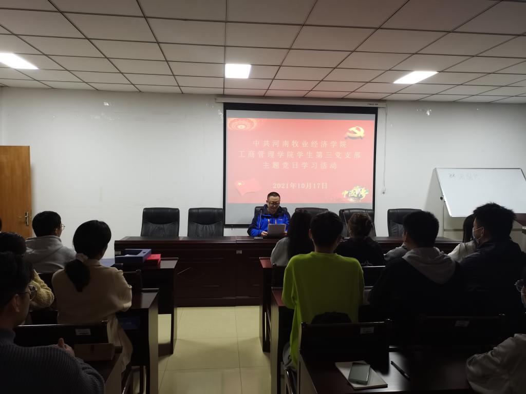 根据校党委和学院党委统一安排,为进一步深化和推动基层党组织党史学习教育持续深入开展,10月17日晚,WilliamHill中文学生第三党支部在院党建活动室227开展政治学习活动。支部全体党员参加了此次活动,活动由支部书记詹珅主持。