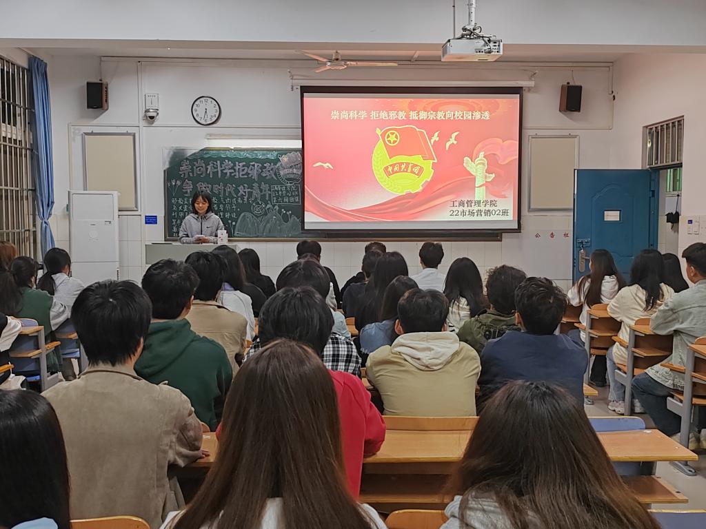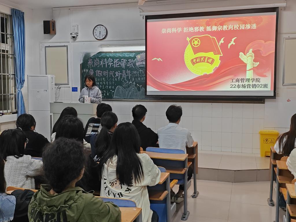 团课伊始,各班团支书向同学们讲解了什么是邪教、邪教的危害以及如何防范抵制邪教,并组织同学们观看反邪教警示的教育专题片,让同学们深入了解邪教对社会、对家庭、对个人的危害。接着,各班同学结合现实生活中的典型案例进行交流讨论,积极上台发表自己的看法与感悟,并纷纷表示:作为新时代青年大学生,会牢固树立正确宗教观,正确对待宗教问题,积极打好反邪教战役,为建设和谐美丽文明的校园环境贡献力量。最后,各班团支书向同学们普及了关于反邪教的法律、政策、知识,强调了抵制邪教的重要性,号召同学们要积极领悟正确价值观,增强自身反邪教的意识,真正做到拒绝邪教。