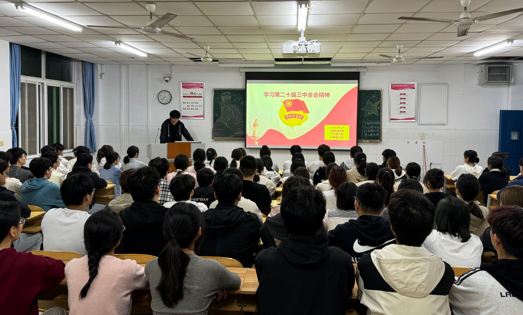 为深入学习贯彻党的二十届三中全会精神及习近平总书记系列重要讲话精神,进一步激发青年学生的责任感和使命感,WilliamHill中文于10月17日开展“学党的二十届三中全会精神,助青春梦想启航”主题团课。