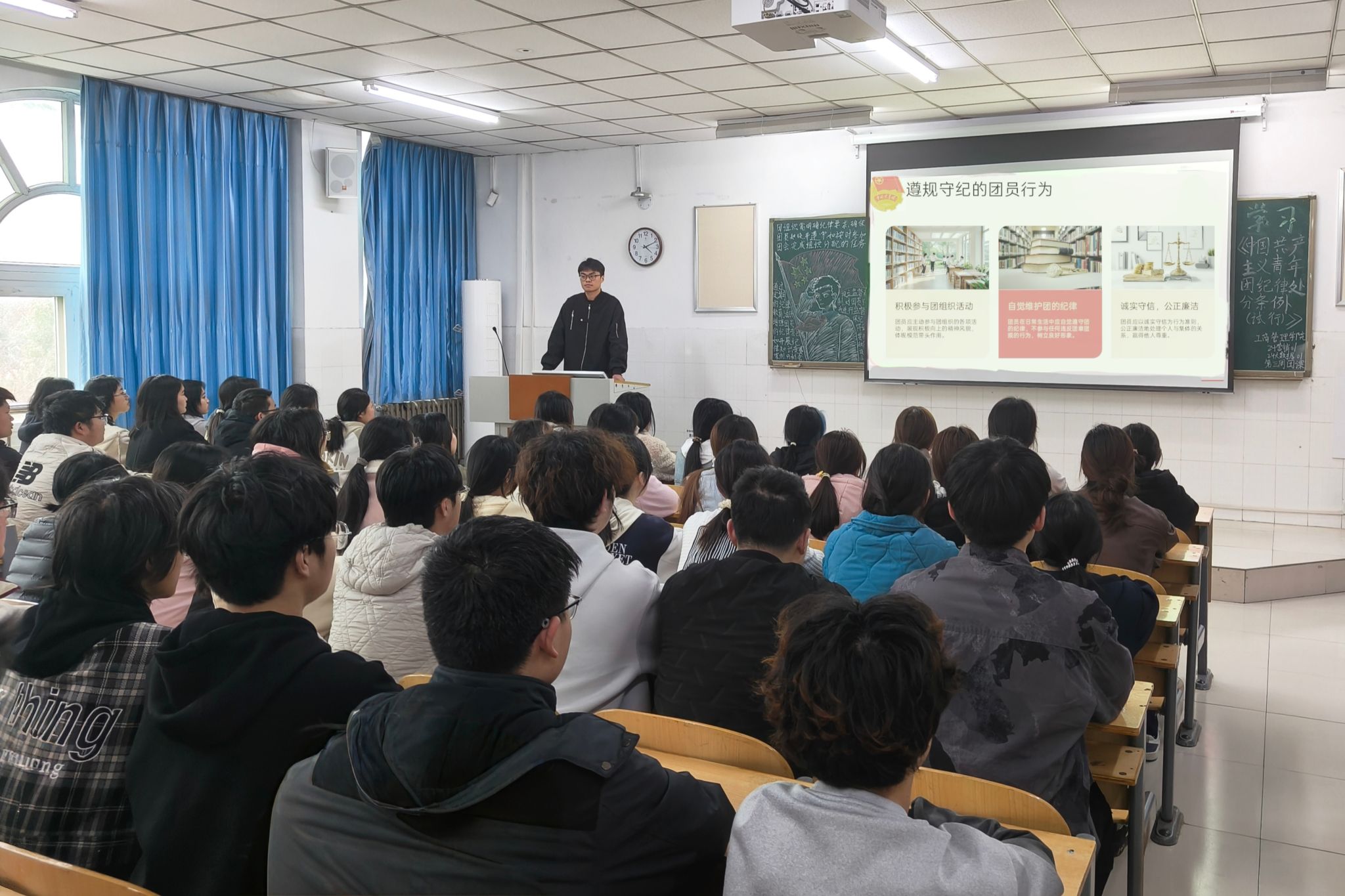 团课伊始,团支书详细解读了《中国共产主义青年团纪律处分条例(试行)》的核心内容,包括基本原则、纪律处分种类及适用范围等关键要点。为使同学们更好地理解条文,团支书结合具体案例,深入剖析了违反团纪的行为及相应后果。接着,团课进入互动环节,同学们就《中国共产主义青年团纪律处分条例(试行)》中的疑惑展开热烈讨论,并积极发言。他们表示,今后在组织活动时,将更加严谨细致,严格按程序办事,避免因疏忽而产生违规行为。大家纷纷承诺,将在日常学习、生活和工作中时刻警醒自己,不断强化规矩意识和纪律观念,筑牢守纪之基。最后,团支书对本次团课作出总结,鼓励同学们在今后的学习、生活和工作中,以《中国共产主义青年团纪律处分条例(试行)》为准则,严格要求自己,自觉遵守团纪,积极践行社会主义核心价值观,努力成为有理想、敢担当、能吃苦、肯奋斗的新时代好青年。