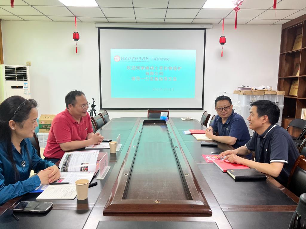 为进一步推进产教融合、校企合作发展力度,提高人才培养质量,2024年5月14日,河南锦绣之星作物保护有限公司副总经理杨韧、行政人事部经理王莉莅临我院进行校企合作促就业洽谈。学院党委副书记詹珅、副院长陈先锋、团委书记贾雪参加座谈。