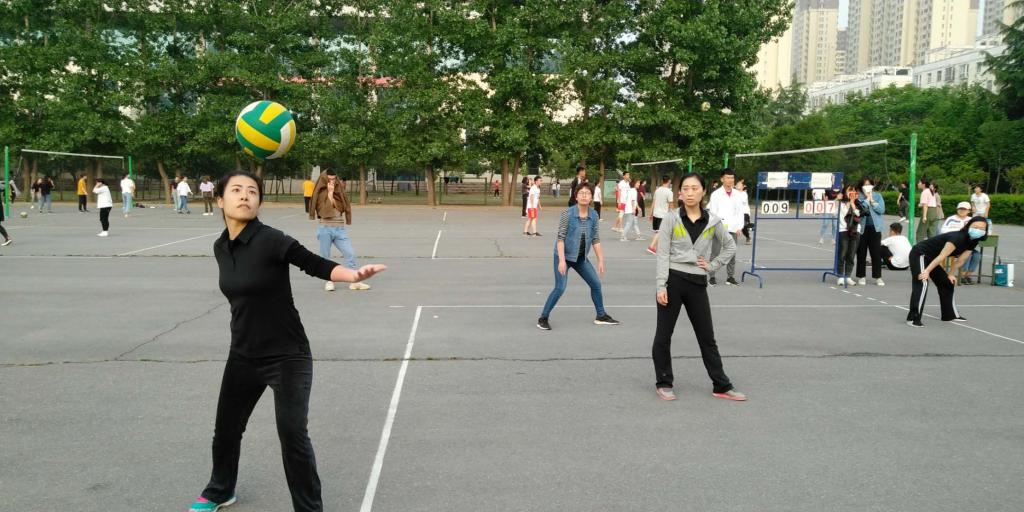 在决赛中,面对强劲对手智能制造与自动化学院队,我院女排队员们心往一处想、劲往一处使、拧成一股绳,充分发挥出了顽强战斗、勇敢拼搏的中国女排精神,积极争取每一个积分。比赛中,刘阳老师手臂受伤,但她咬牙坚持;武钰敏、张滢老师接发球较多,打起球来手被震的疼痛发抖,却不言放弃、坚持到底,各位队员一起拼尽全力,即便出现比分落后的局面,也是一分一分的咬住并伺机反超。最后,凭借女排队员的出色发挥,赢得了决赛比赛的胜利。比赛过程精彩纷呈、战况激烈,在周围观众的阵阵喝彩和加油声中,双方队员为大家奉献出了一场精彩的比赛。