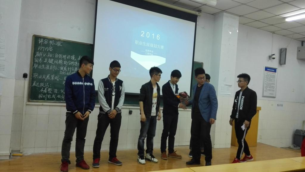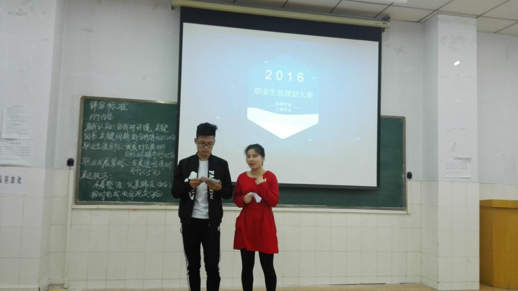 比赛开始,两位主持人率先上台对比赛规则及到场嘉宾进行详细介绍。此次比赛由ppt展示和现场答辩两个环节组成。在ppt展示环节,参赛选手通过对职业环境的分析、兴趣才能和SWOT等多种分析方式确定自己的职业目标,并详细解说已制定出的职业生涯规划中的实施计划。结构层次分明,逻辑清晰,紧紧抓住观众的注意力,使现场的气氛不断升温。在现场答辩环节,评委针对各位选手的规划方向对其进行要点提问,细致地指出选手们的不足并提出建议并评分。最后由特邀嘉宾张梦辰同学带来的优美的歌曲《七里香》后团学会副主席赵天对本次比赛冠军连锁二班的张亚辉同学,亚军工商一班的尚熙同学上台颁发奖章奖品。整场比赛到此结束。