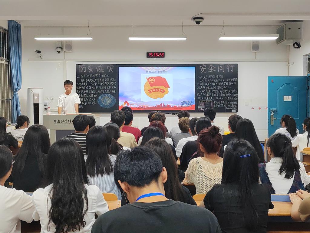 团课伊始,各班团支书向同学们列举了各类自然灾害及安全生产事故对人民生命安全及财产安全造成的巨大伤害,充分体现了增强防灾减灾意识、落实防灾减灾工作的重要性。接着,各班围绕消防安全、防汛安全、安全管理、应急维稳等内容组织同学们观看防灾减灾安全教育视频,并结合同学们的日常校园生活,向同学们普及了各类灾害事故预警知识与避险基本技能。最后,同学们就“如何规避身边存在的安全隐患”展开激烈讨论,同学们热情高涨,大家纷纷表示,防灾减灾不仅是应急之举,更应是长久之计。作为青年学生,应当把功夫下在平时,主动配合推进校园安全风险网格化管理,并自主学习从而提高防灾减灾抗灾救灾能力,为筑牢防灾减灾的“铜墙铁壁”贡献自己的一份力量。