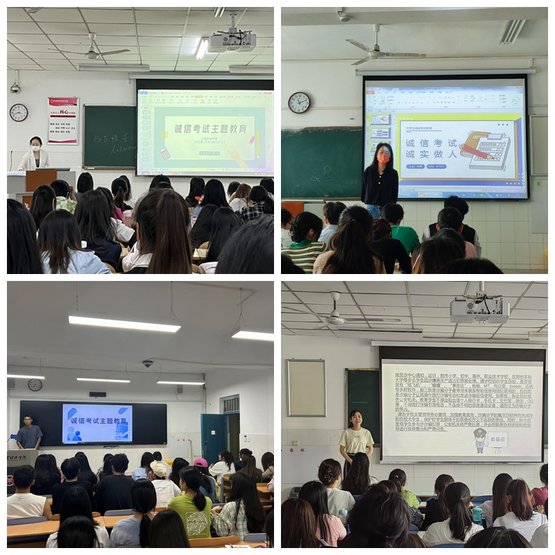 为进一步教育引导学生端正学习态度,严肃学风考纪、创建优良学风,构建诚信校园,营造公平公正的考试氛围,6月2-5日,学院全体辅导员深入各班级组织召开诚信考试主题教育班会。