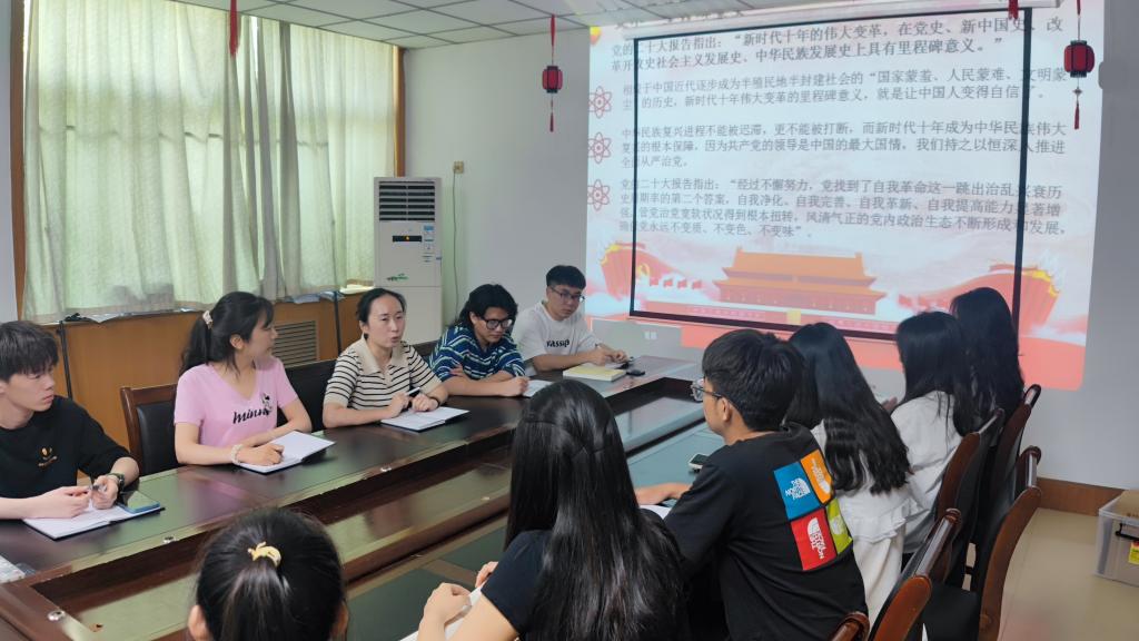 培训中,贾雪围绕党的二十大报告的重要意义、深远影响、结构脉络、重点内容提要等方面进行解读,同时带领同学们深入学习党的二十大精神。通过学习,学生干部们深刻领会到党的二十大报告的科学性、理论性和指导性,对党的二十大报告内容有了更深刻的认识。接着,全体学生干部围绕“如何学习贯彻党的二十大精神”这一问题展开热烈讨论,一致表示要积极主动将党的二十大精神融入日常学习、生活实践中,坚持将“全心全意为同学服务”的宗旨作为工作的落脚点,发挥好深入同学、联系同学的桥梁纽带作用,牢牢把握正确政治方向,带头先学一步、学深一层、学以致用。最后,贾雪鼓励同学们不断深入学习党的二十大精神,灵活地将其运用到学院团学会工作当中,把党的二十大精神转化为推动工作落地见效的强大动能。