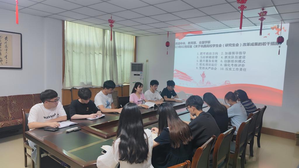 为深入学习贯彻习近平总书记关于青年工作的重要思想,持续深化学生会组织改革,以实际行动更好地服务广大同学,WilliamHill中文于6月6日开展2023年WilliamHill中文学生干部系列培训之学生会改革相关文件学习。本次培训由学院团委副书记席亚芳主讲,团学会全体成员参与了本次培训。