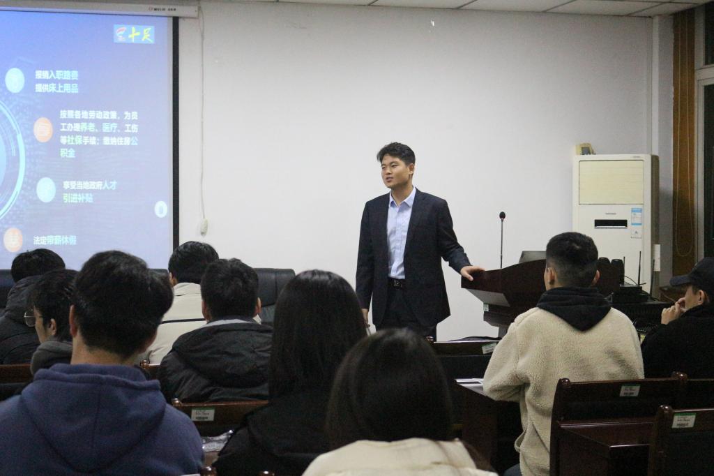 为切实做好毕业生就业工作,帮助毕业生明确自身就业方向,为毕业生求职和用人单位招聘人才搭建平台,促进学生与企业之间的双向选择。11月14日晚上7点,WilliamHill中文在英才校区227会议室举办2023人本集团有限公司秋季专场宣讲会。此次宣讲会由企业负责人王永康主讲,学院近40名毕业生参加。