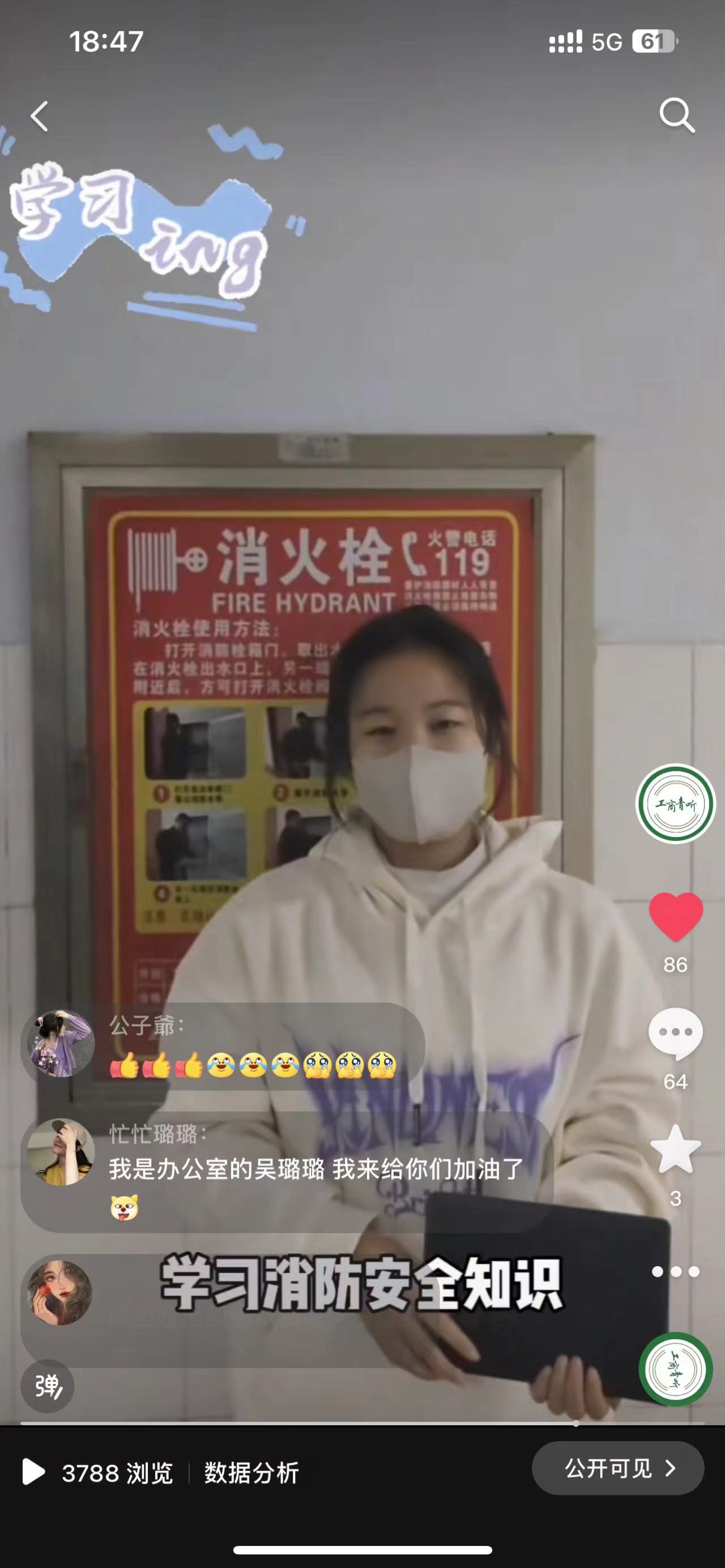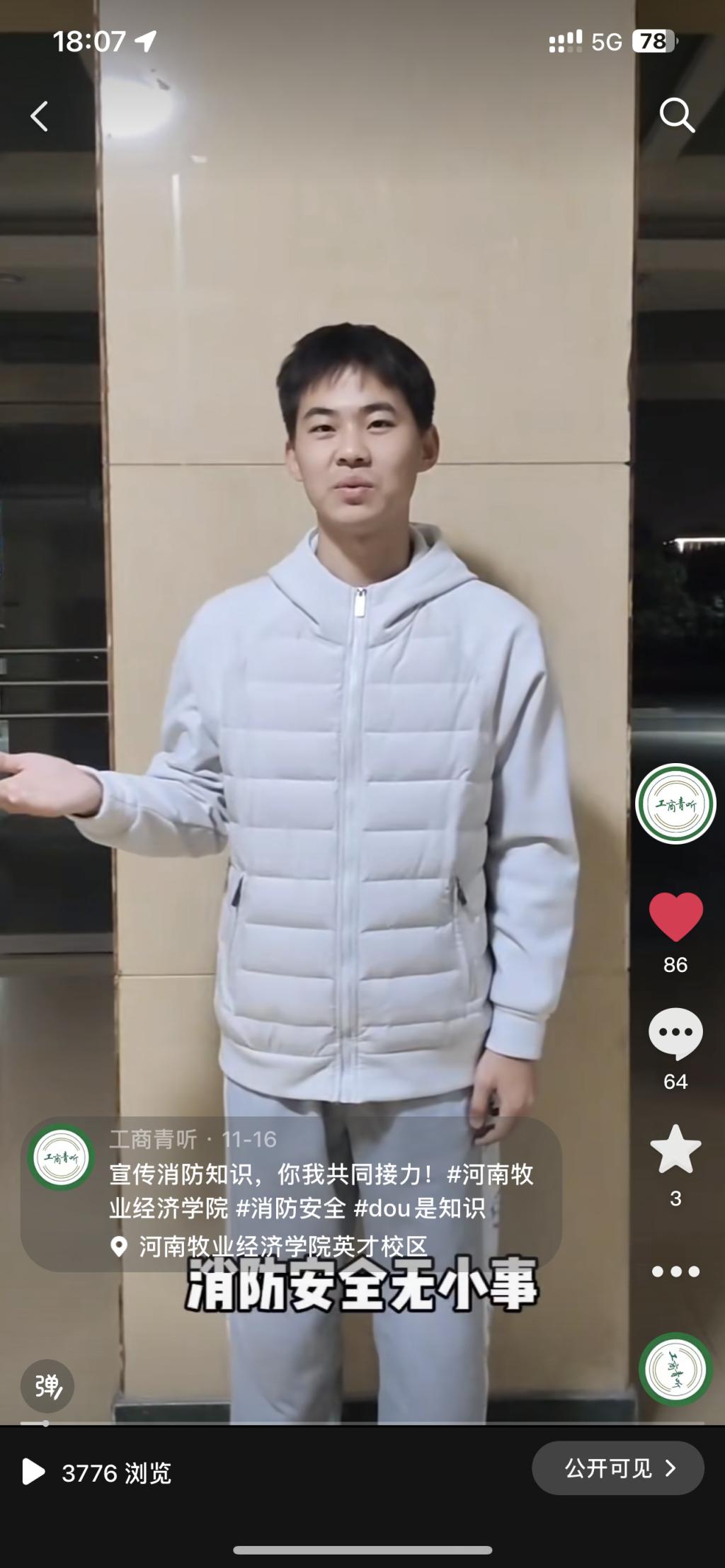 本次活动要求同学们以抖音短视频的形式,拍摄消防安全知识宣传作品。视频中,同学们紧紧围绕消防安全的各个方面,结合实物拍摄,生动形象地展示了消防器材的正确使用、火灾逃生技巧、火源隐患的排查等消防安全知识。通过短视频的形式,将消防安全知识传递给更多的人,让大家在轻松愉快的氛围中,提高消防安全意识。同学们纷纷表示——作为新时代的大学生,要牢固树立“预防为主,生命至上”的理念,时刻保持警惕,关注消防安全。火灾事故往往源于细节,避免火灾的发生就要从自身做起,严格遵守消防安全规定,杜绝火源隐患。