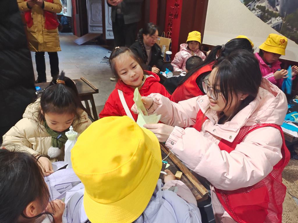 研学伊始,宋佳露同学和其他志愿者一起,组织带领小学生们进入大雅堂博物馆,并由朱馆长讲解丹棱县的历史、大雅堂的由来、当地知名历史人物,如:三苏父子、彭祖以及黄庭坚等。随后,宋佳露同学和其他志愿者一起组织学生们学习并动手制作宋代服饰。最后,他们来到当地的企业——威兰特果小酒企业,在这里,宋佳露同学和学生们一同参观了果酒的制作场地、工序和储存场所,并亲自体验了榨取果汁的过程。