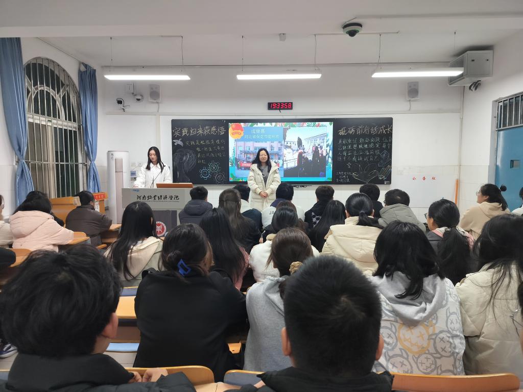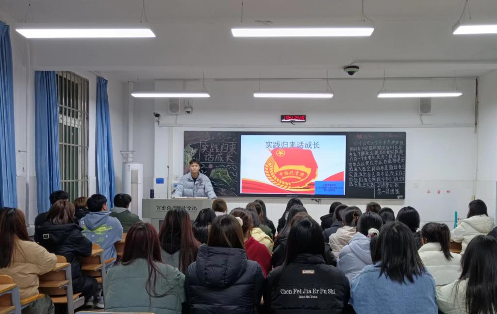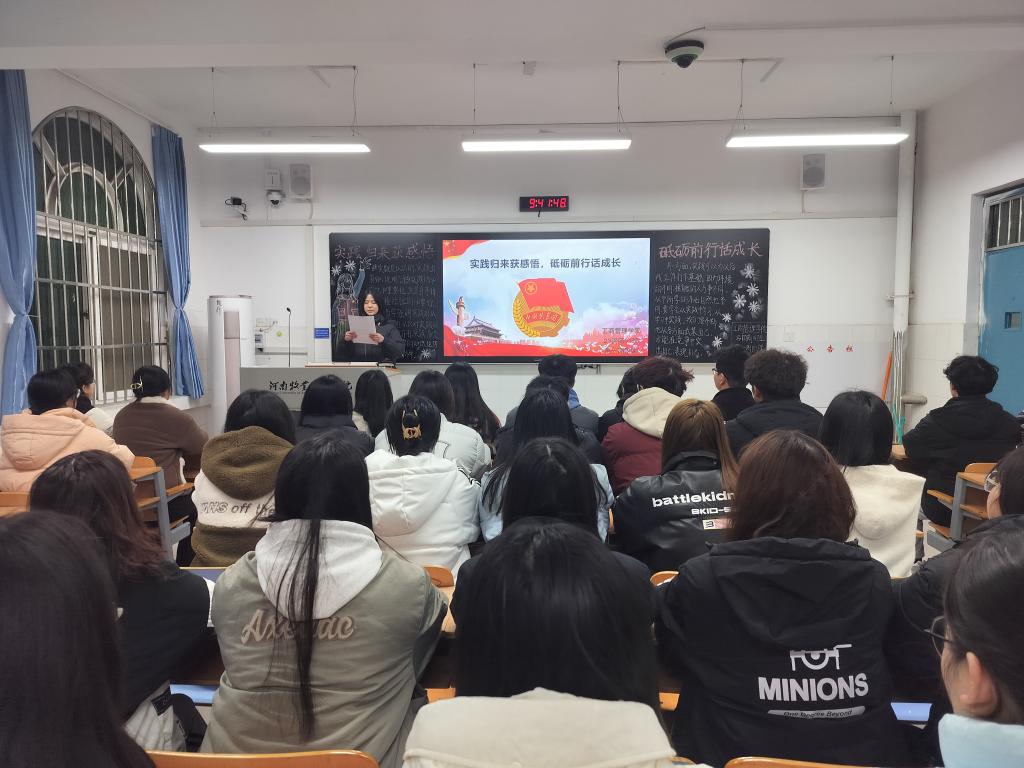 团课伊始,各班团支书组织同学们观看我院学生投身社会实践的视频,选取优秀案例,通过开展实践专题报告会总结有效经验帮助同学们认识到自身的不足,强调要更加注重细节,保持积极态度。接着,各班团支书组织同学们就自己亲身经历的社会实践展开激烈的讨论,积极上台分享自己的实践心得和体验,大家纷纷表示要积极参与社会实践活动,将理论与实践相结合,为社会发展贡献青春力量。最后,各班团支书对本次团课进行总结,激励同学们将课堂中学到的知识内化为青年信仰,外化为青年行为,并通过实践拓宽视野,增长见识,锻炼意志,树立服务社会的思想。