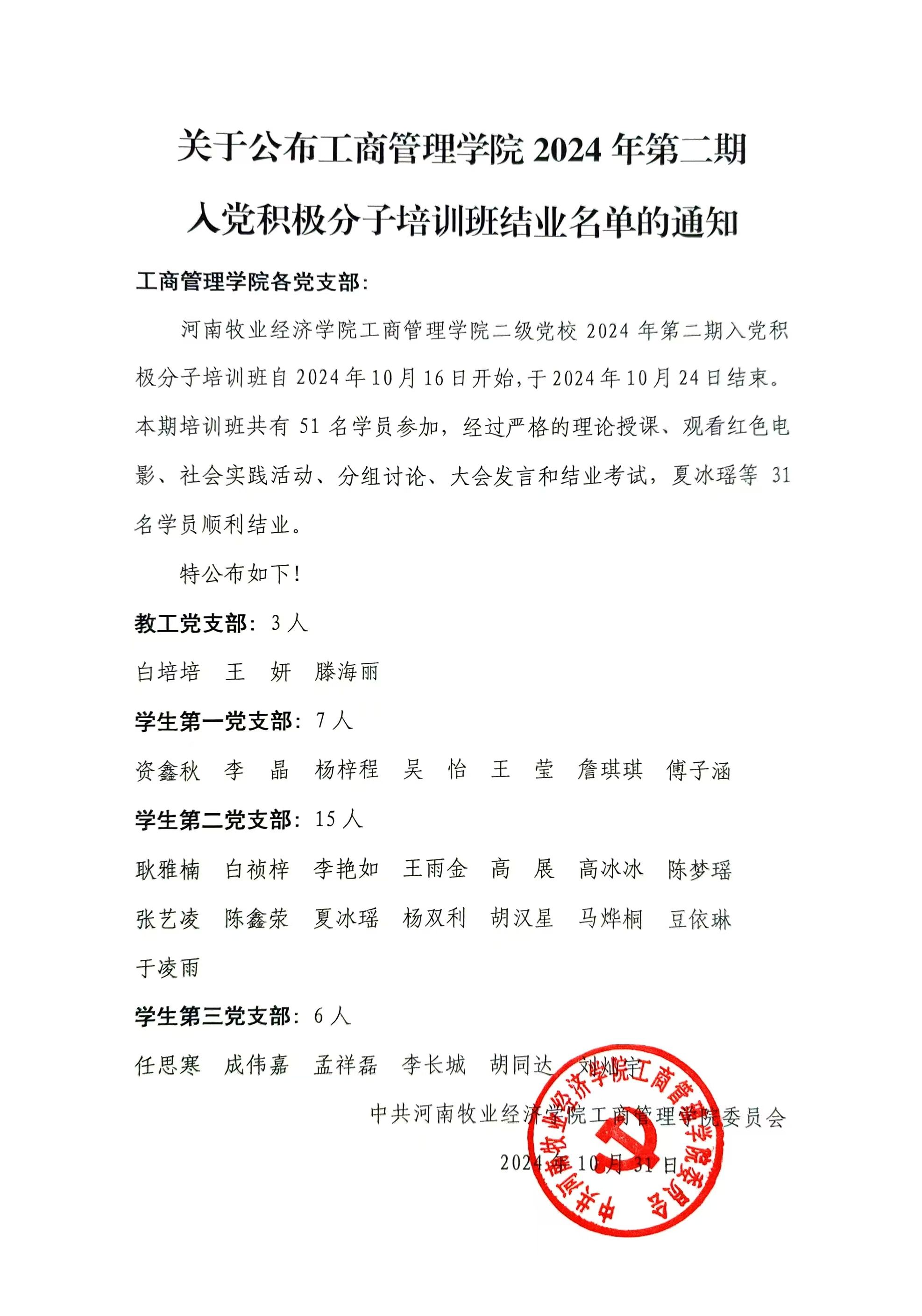 关于公布WilliamHill中文2024年第二期 入党积极分子培训班结业名单的通知