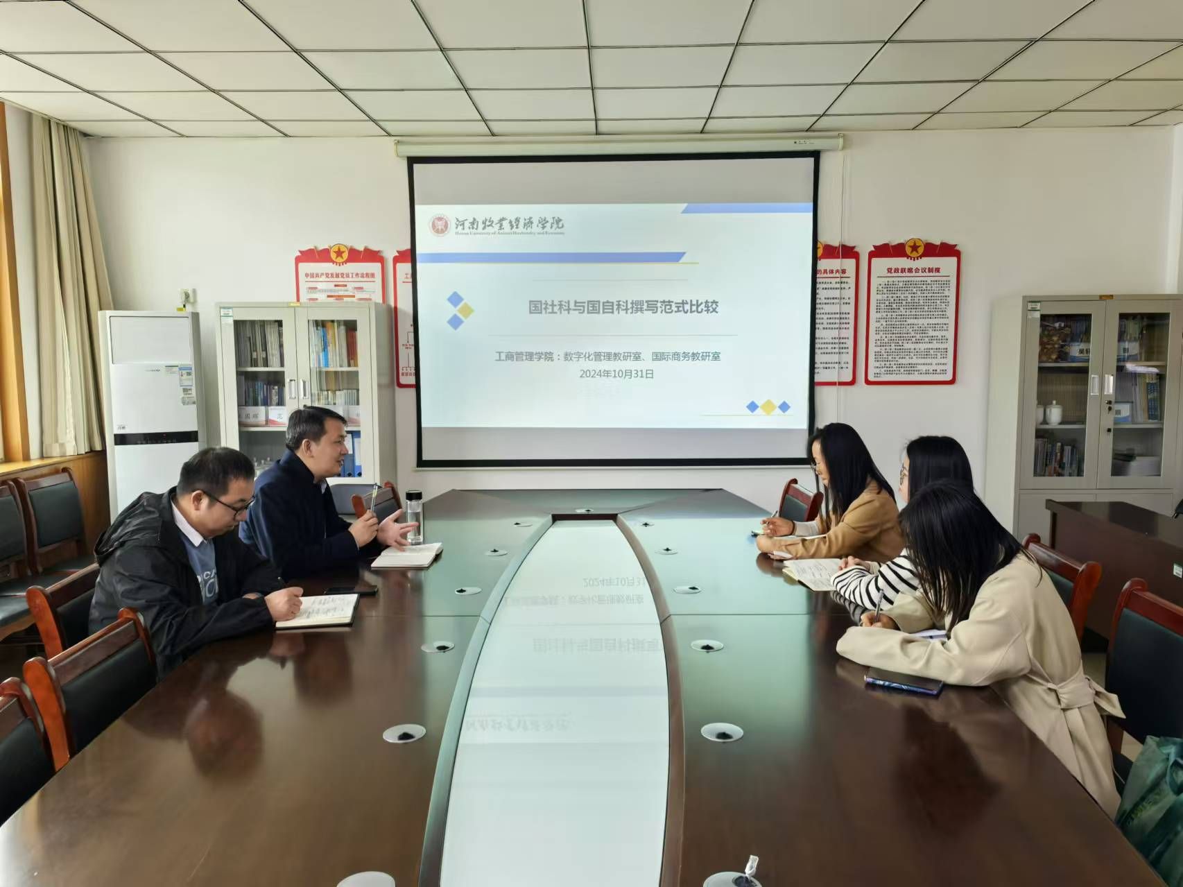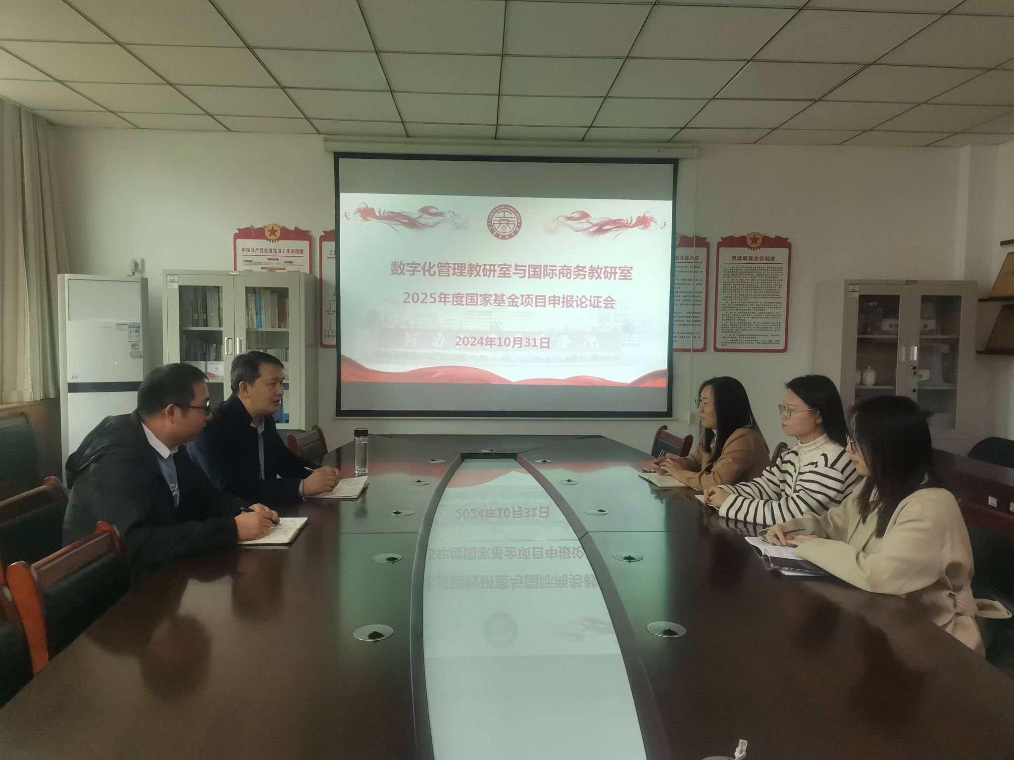根据WilliamHill中文2025年度国家基金项目申报工作方案统一安排,为进一步贯彻落实学院“教研室论证—学院论证—一对一论证”的三级论证要求,2024年10月31日数字化管理教研室和国际商务教研室国家基金项目申报论证会在412会议室举行,教研室教师及项目申请人参加会议,会议由数字化管理教研室主任闫超华主持。