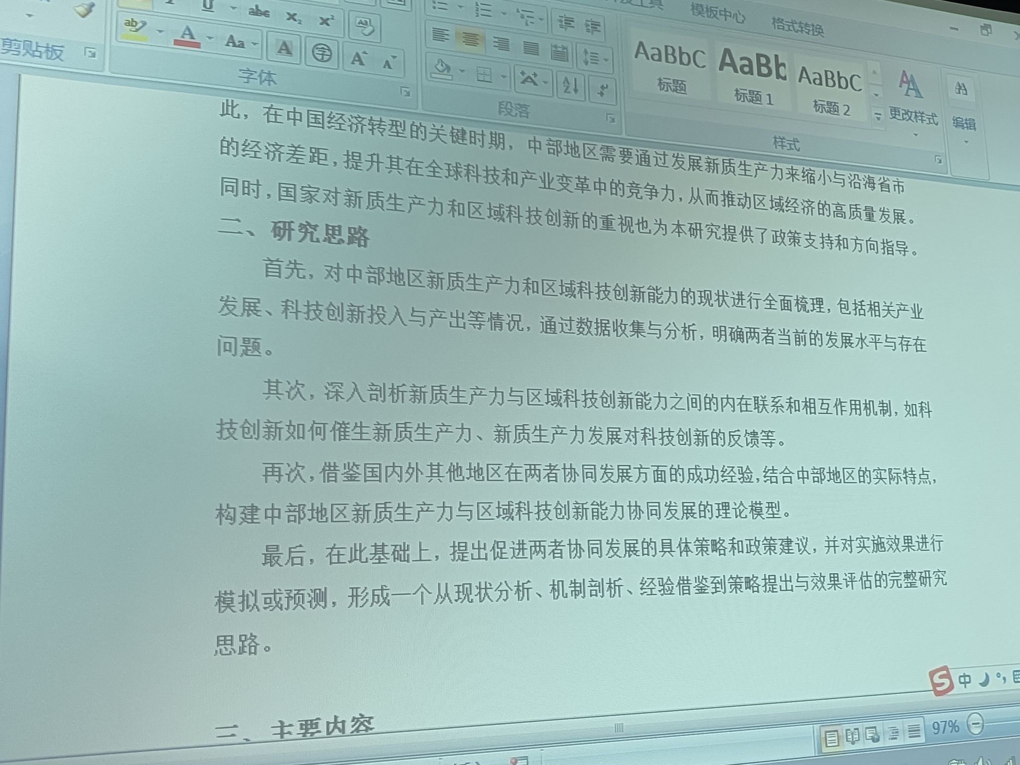 本次国家基金项目申报论证会共分两个环节:一是申请人汇报项目基本情况;二是国社科与国自科撰写范式集中学习。首先,申请人滕海丽博士基于中部地区崛起国家战略,围绕新质生产力与区域科技创新能力协同发展机制,从研究背景、研究思路、主要内容、主要研究方法以及相关概念阐述等方面对项目研究的整体概况进行了讲解。与会人员从选题背景与意义、选题的主要研究内容以及相关研究思路等进行了讨论,指出存在的问题并提出相应的修改建议。随后,闫超华博士做了“国社科与国自科的撰写范式比较”专题辅导,并结合两个具体的申请书案例的解析,加深了大家对国社科与国自科申请书撰写要求的认识和理解。