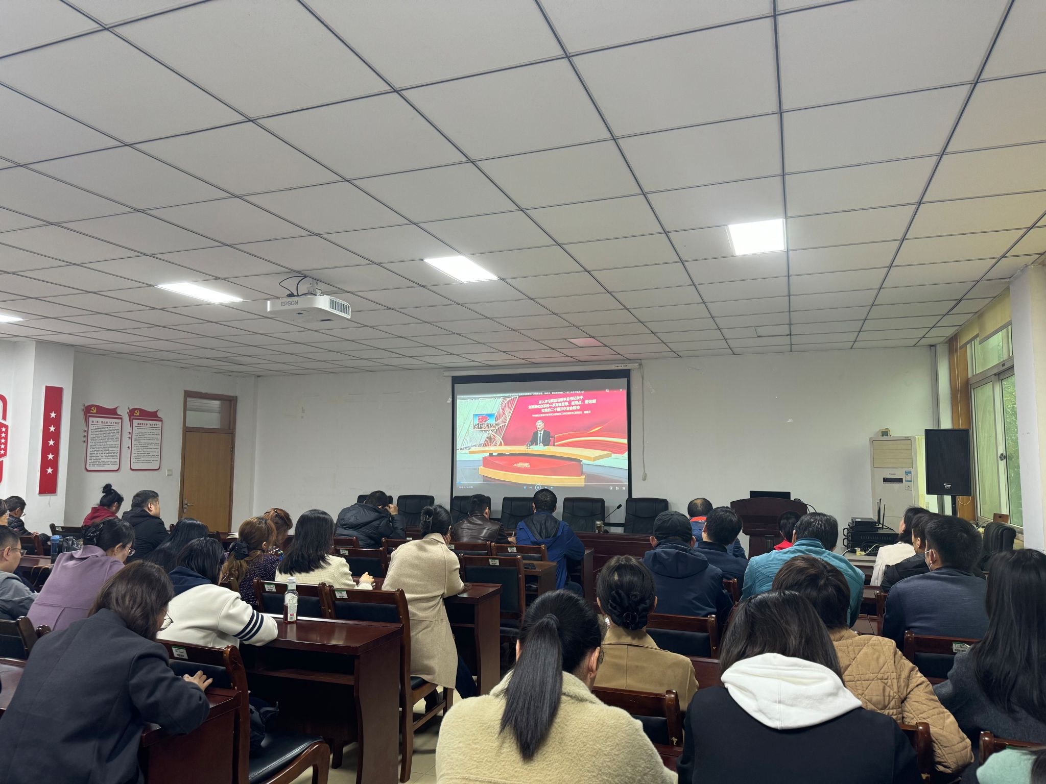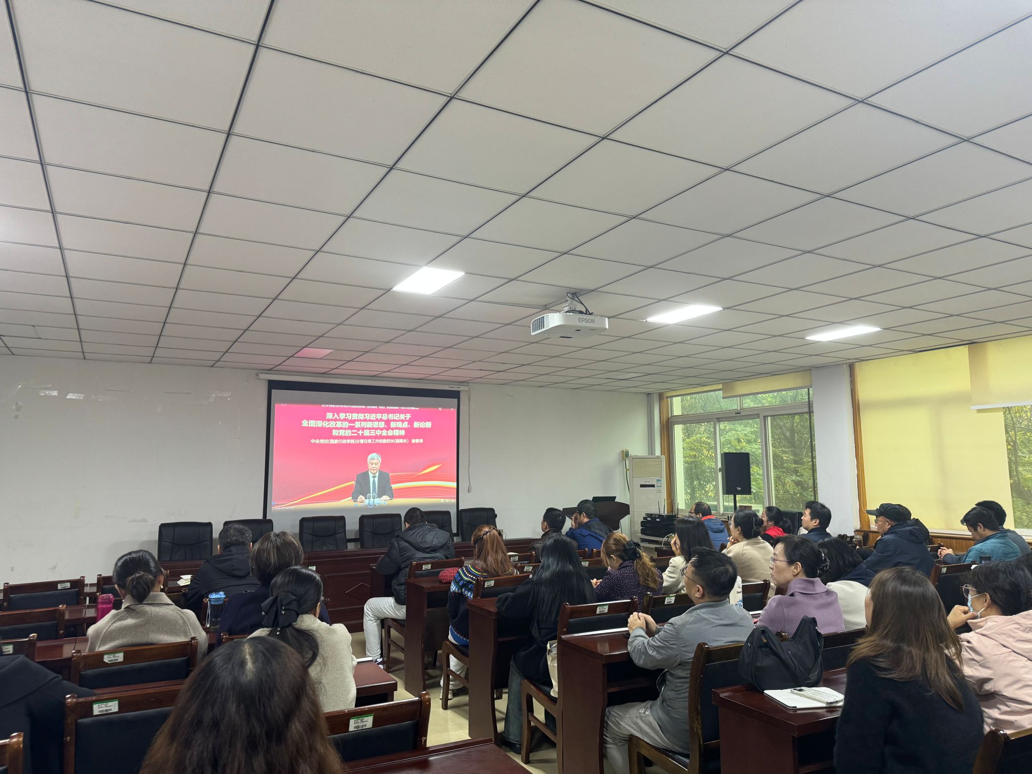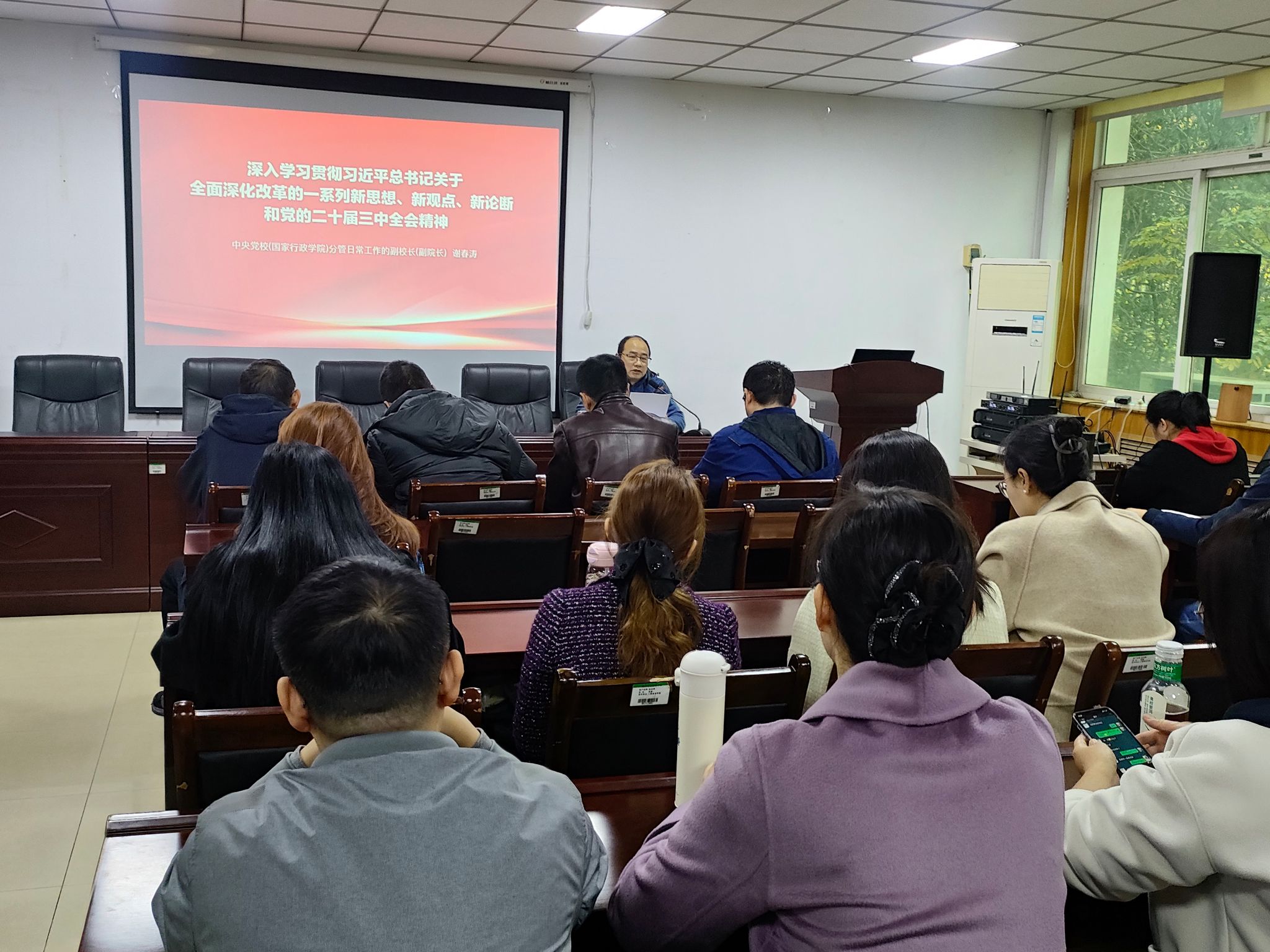 会上,全体教工共同观看了了中央党校(国家行政学院)分管日常工作的副校长(副院长)解春涛教授所主讲的《深入学习贯彻习近平总书记关于全面深化改革的一系列新思想、新观点、新论断和党的二十届三中全会精神》视频课程。