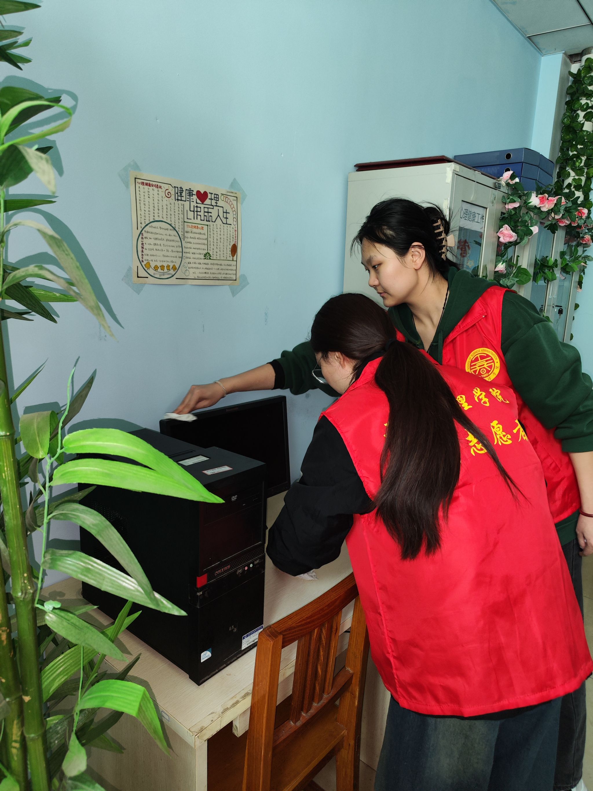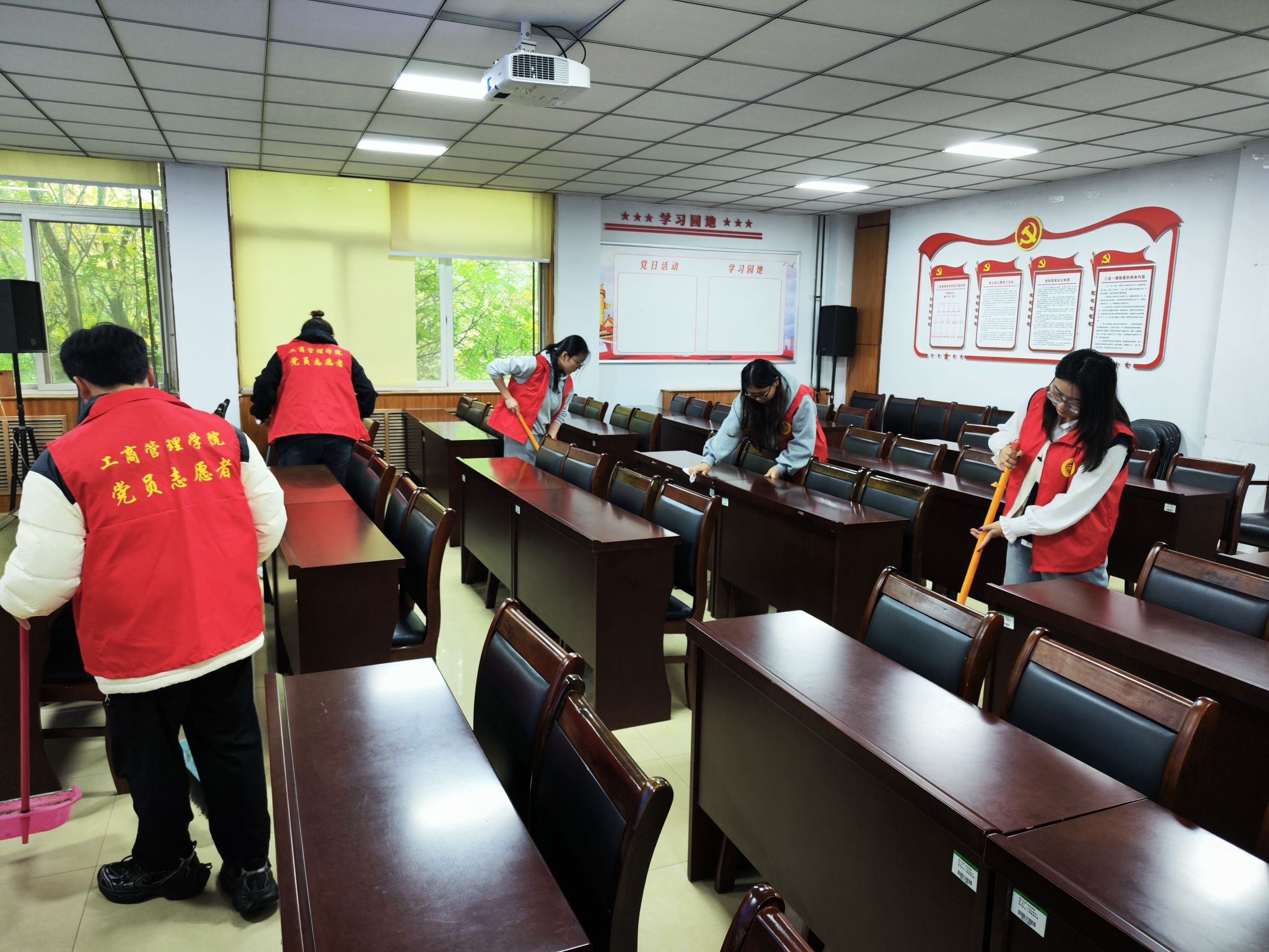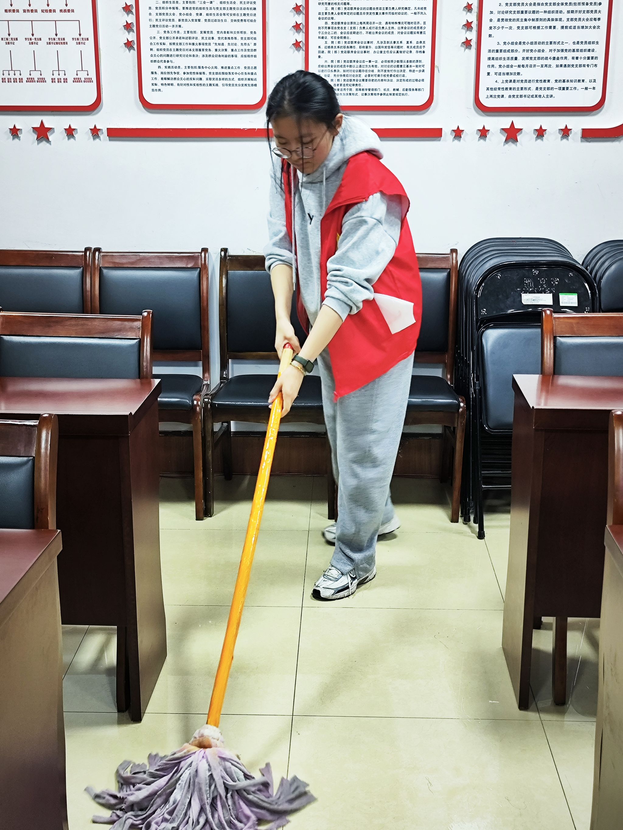 细致安排工作,保障高效成果。活动伊始,志愿者们就打扫区域展开讨论并进行分工。他们身穿红色马甲,满怀热忱积极参与其中。手握清洁工具,清扫地面时一丝不苟,擦拭桌椅时认真专注,力求让每处角落都一尘不染。实践加强党性,行动凸现担当。此次志愿活动不仅是一次简单的清洁打扫,更是一次深刻的党性教育实践。在劳动过程中,志愿者们相互协作、交流心得,深刻领悟到作为一名党员发展对象应有的责任与担当。每一次弯腰擦拭、每一次用力清扫,都像是在擦拭和清扫自己的心灵,让党性的光辉在行动中愈发闪耀。