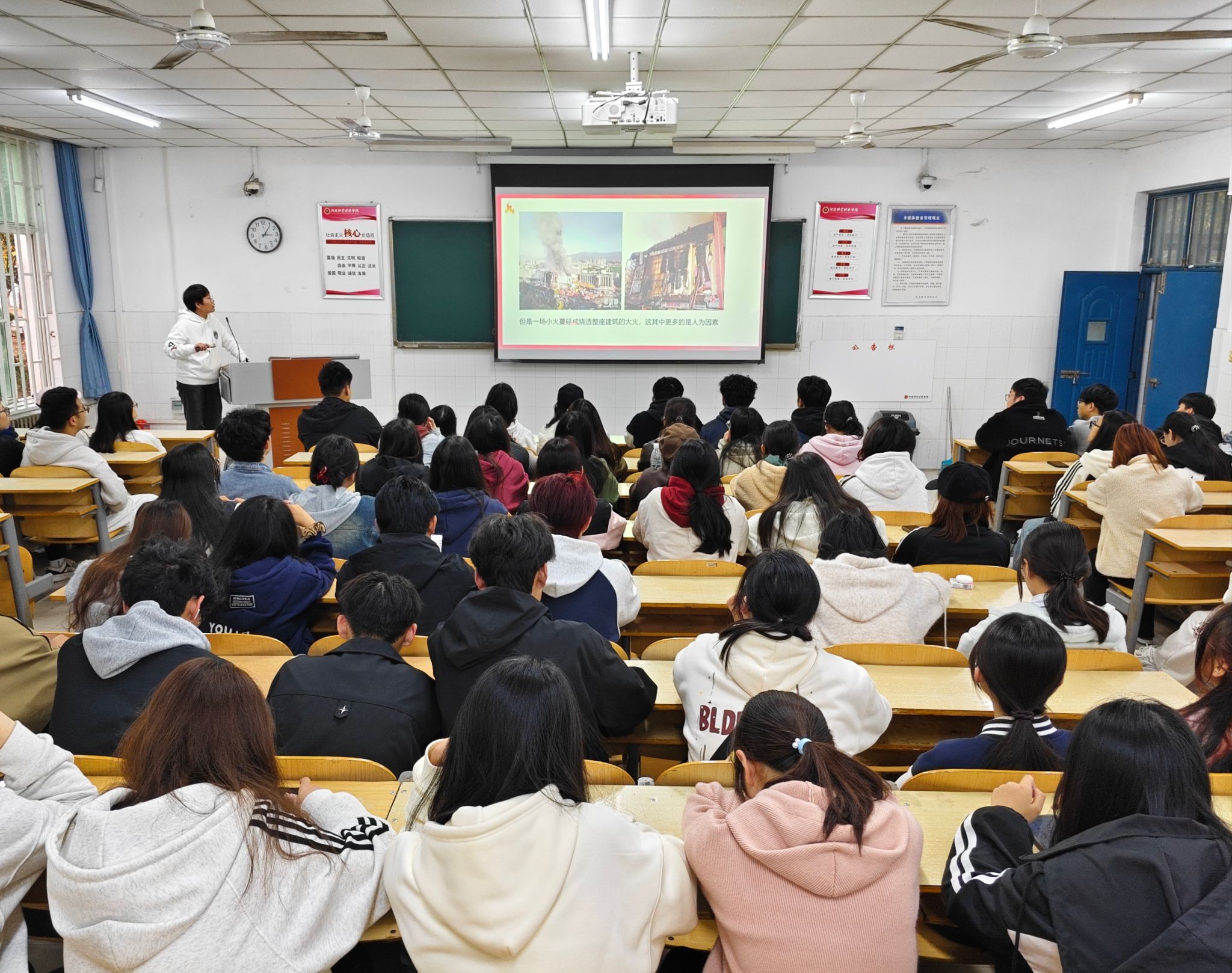 讲座伊始,赵平老师通过最新的学校火灾案例分析展开讲解,通过播放火灾事故和如何分辨及正确使用灭火器的片段,使学生对消防安全有了进一步的认识和掌握。随后,赵平老师从校园宿舍消防安全的特点出发,为学生讲述了用火用电安全、宿舍限电、插线板的使用及违规电器的禁止。讲座的互动环节,同学们积极提出自己的疑问,与赵平老师进行了深入的交流与讨论,这也有助于同学们更好地记住消防安全知识。赵平老师还呼吁同学们积极宣传消防安全意识,更好地预防火灾的发生。最后,赵平老师再一次强调了消防安全在日常生活中的重要性,并呼吁大家正视火灾的潜在威胁,积极采取措施进行预防。同学们纷纷表示通过本次讲座学习到了许多实用的消防安全知识和应对火灾的技能。