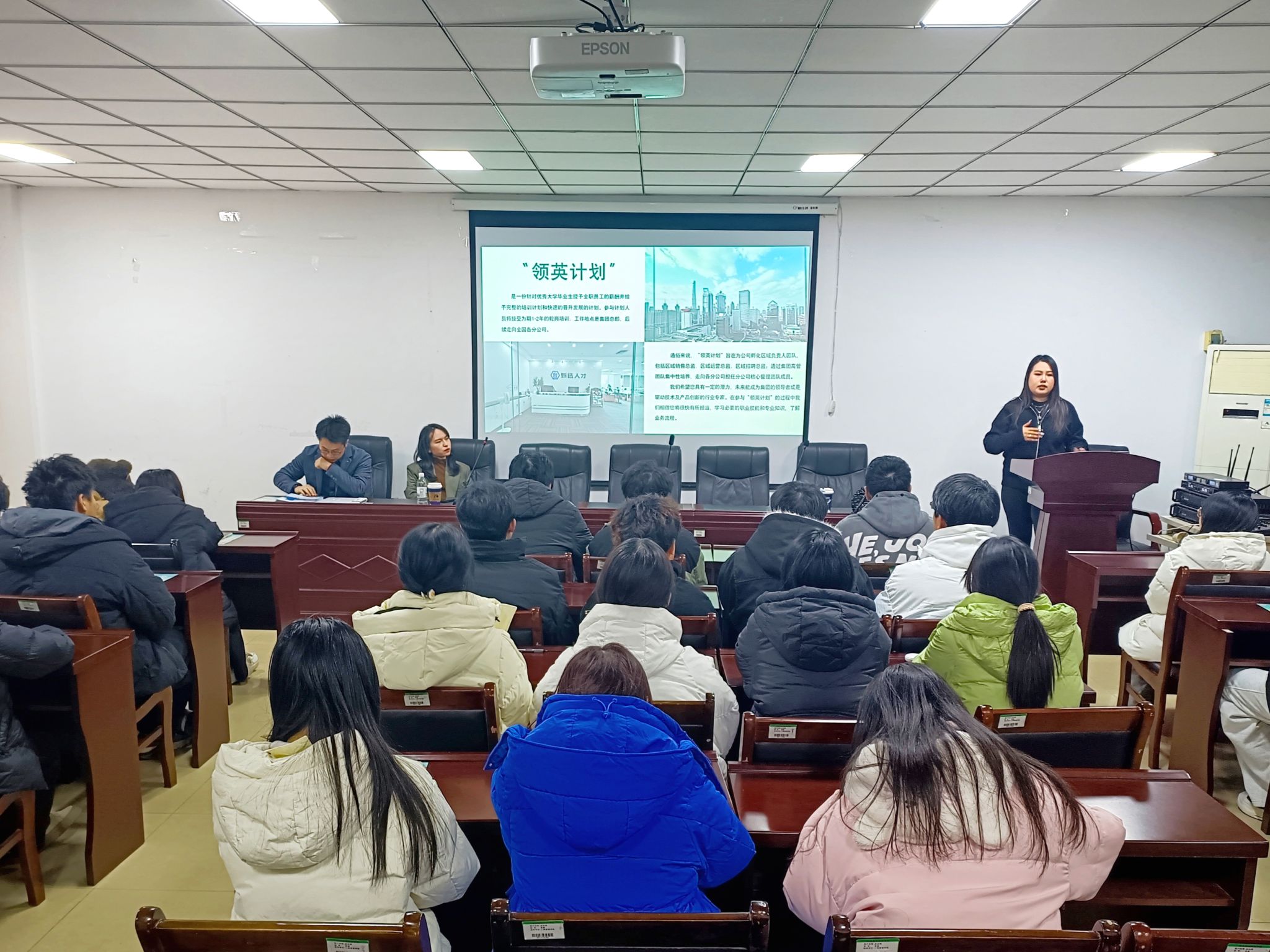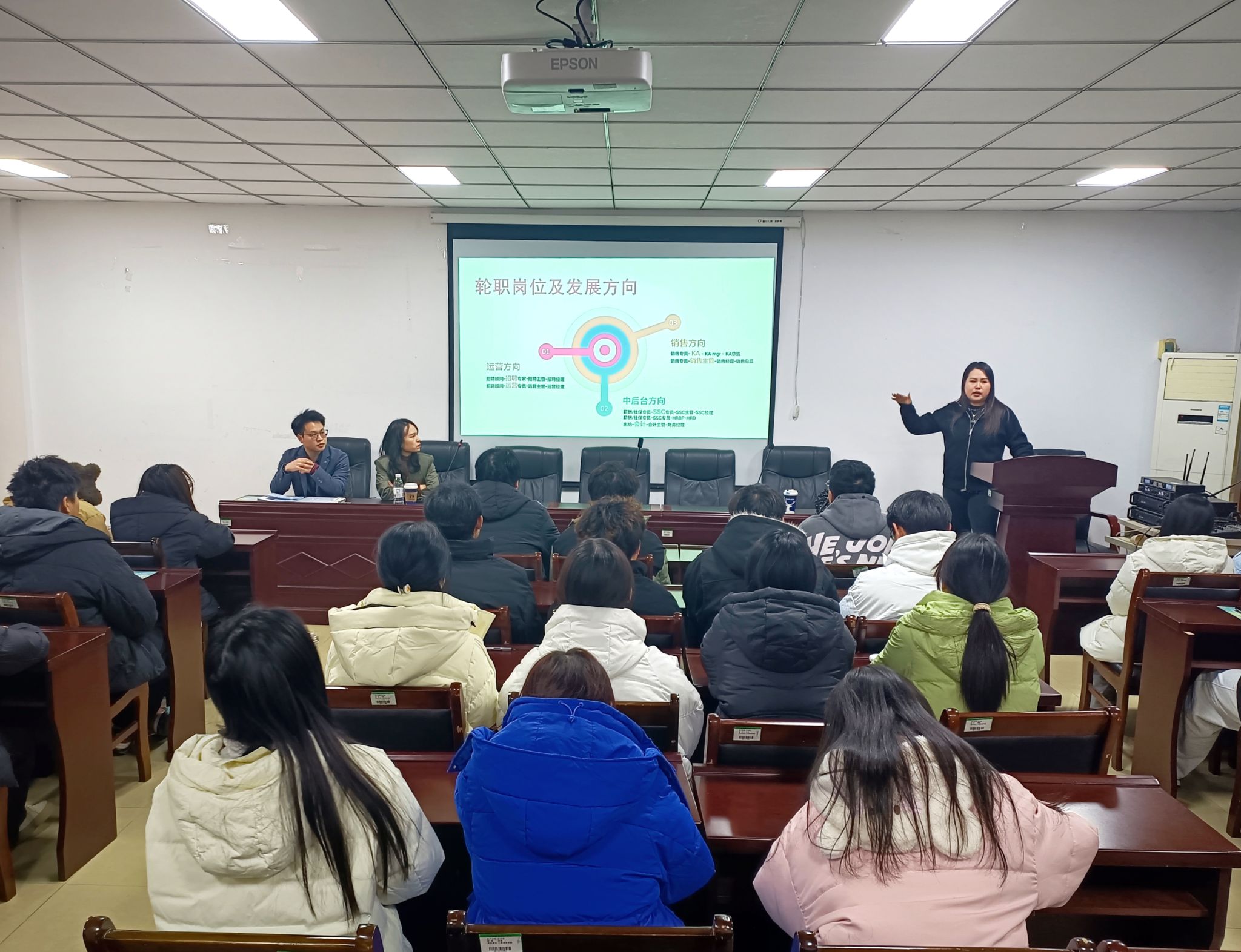 宣讲会伊始,销售总监刘芯妍详细介绍了公司的基本情况。她表示,Selection甄选人力是一家专业聚焦轻白领岗位的人力外包服务机构,历经多年发展,已积累了丰富的行业经验和资源,致力于为客户提供高效、专业的人力外包服务。同时,公司注重团队建设与人才培养,希望与有志于投身人力外包服务行业的学子们共同开启职业新篇章。接着,公司联合创始人徐珊珊就职业规划问题为同学们提供了详细的信息和建议,还通过讲述自己的就业创业经历,鼓励同学们不断提升自己的能力和素质,把握机遇,积极规划职业生涯。最后,她分享了企业的年度领英计划、人才培养模式和晋升机制,让在场的学子们对未来的职业发展有了更加清晰的认识和规划。同学们也纷纷表示,这次宣讲会不仅让他们感受到了人力外包服务行业的就业前景,还让他们进一步明晰了职业发展方向,并表示将会把所学应用于实践,为梦想努力奋斗,书写属于自己的精彩篇章。