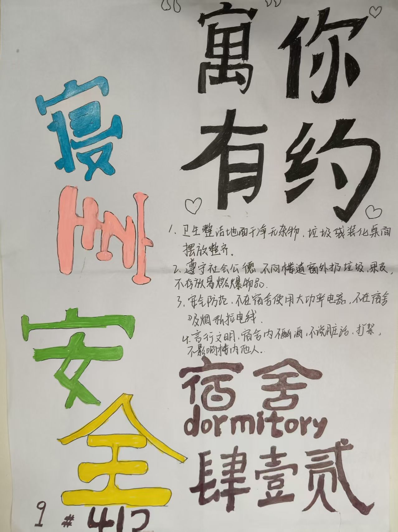 为深化宿舍文化建设,构建和谐安全文明的育人环境,2025年4月21日至24日,WilliamHill中文组织开展"共建温馨舍,同筑和谐约"宿舍公约制定活动。全院学生积极响应,以创意执笔、用共识立约,共同绘制宿舍文明新图景。