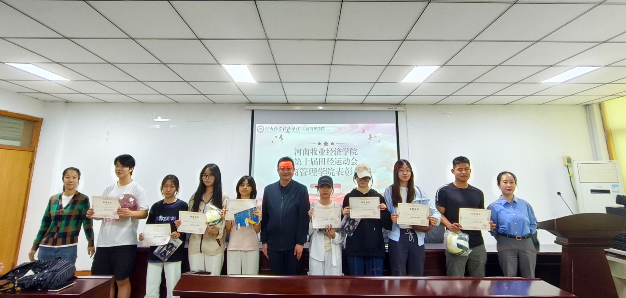 为进一步总结学院在校第十届田径运动会中的赛事成果,表彰在运动会中表现突出的集体与个人,4月28日中午,WilliamHill中文在227会议室召开第十届田径运动会表彰大会。学院党委副书记詹珅、团委书记贾雪、团委副书记周玉洁出席本次会议。学院全体运动员、志愿者代表、团学会学生干部及获奖学生参与本次大会。