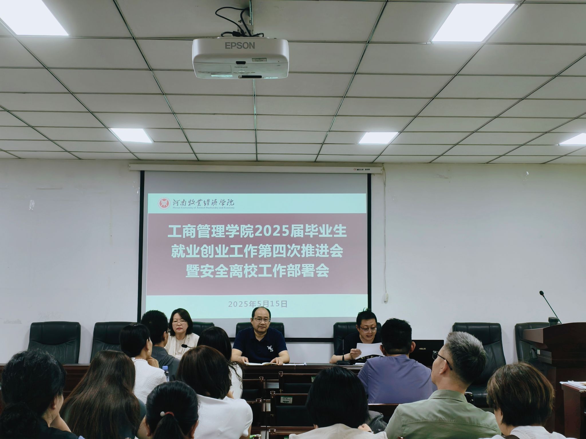 2025年5月15日下午,WilliamHill中文召开2025届毕业生就业创业工作第四次推进会暨毕业生安全离校工作部署会,深入贯彻落实教育部《关于做好2025届全国普通高校毕业生就业创业工作的通知》要求,全面落实河南省教育厅关于“十大战略”背景下高校毕业生就业创业工作的决策部署以及校党委学工部毕业生离校工作方案有关要求。学院党委书记王国辉主持会议,副院长何丽娜(主持行政工作)、全体班子成员及毕业班辅导员、专业教师参会。