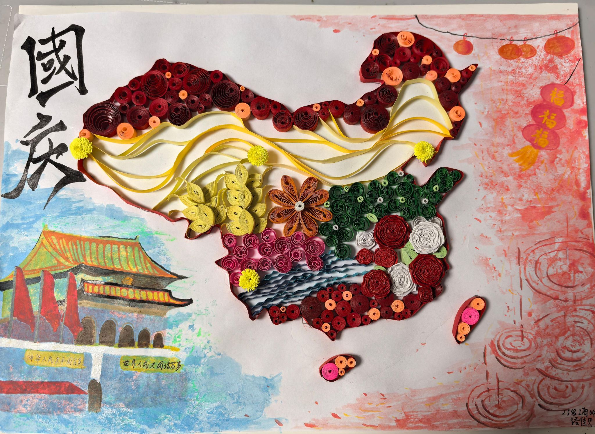 本次活动以多元化互动形式为载体,旨在引导学生感悟国家发展成就,增强集体荣誉感与归属感。活动设置了“我与国旗同框”打卡挑战和“红色印记”手工工坊两大板块。在“我与国旗同框”打卡挑战中,师生们在地标建筑校史馆、升旗台、红色文化墙等地,与国旗元素创意合影,用镜头定格对祖国的深情祝福。而“红色印记”手工工坊板块中,大家热情参与爱国主题剪纸、衍纸画、手抄报的制作,A4纸张上的每一处笔触、每一份剪裁,都饱含着对祖国的热爱与敬意。通过此次活动,同学们深刻体会到国家繁荣发展的来之不易,更加坚定了将个人理想融入国家发展的信念,他们纷纷表示要将活动中激发的爱国热情转化为刻苦学习、奋发作为的实际行动,为民族复兴贡献青春力量。