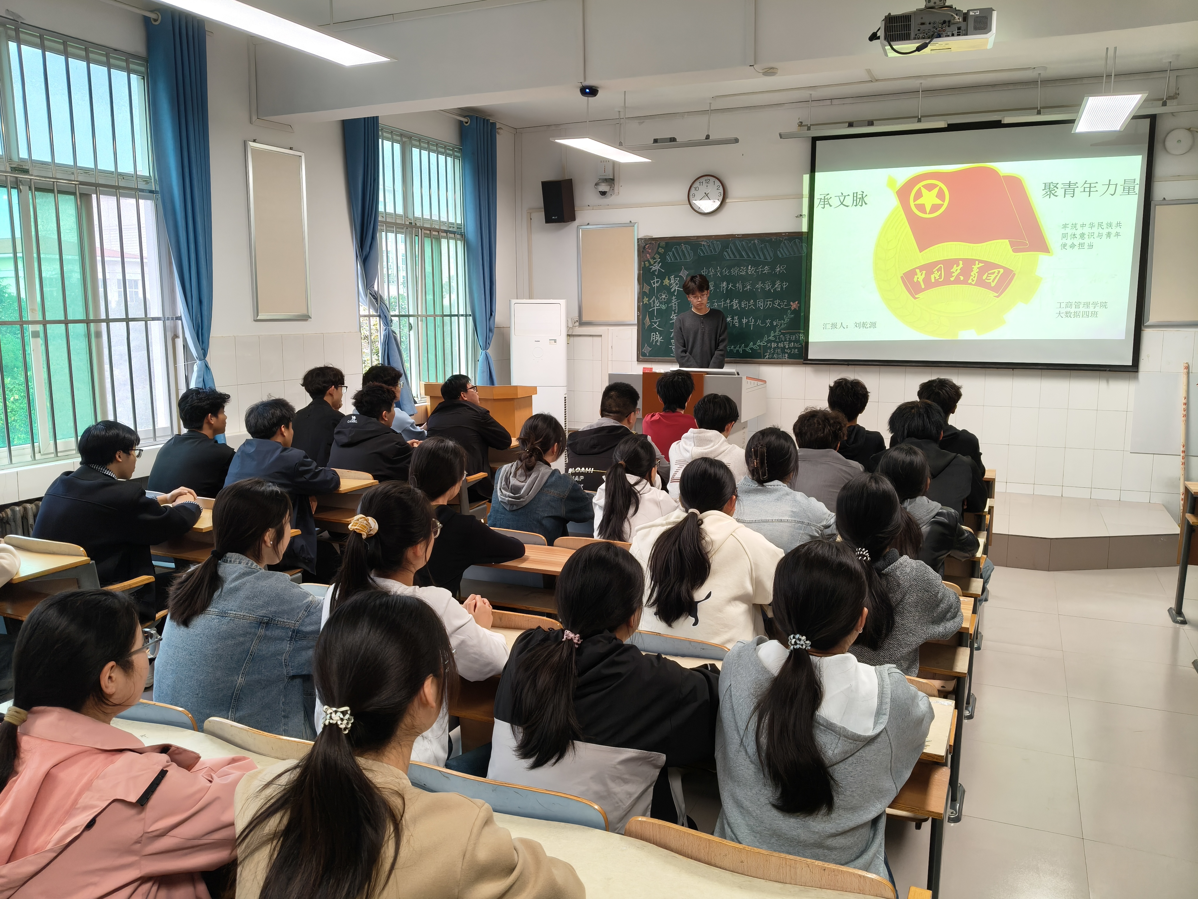 团课伊始,各班级团支书通过精心制作的PPT,带领同学们深入学习习近平总书记在纪念大会上的重要讲话精神。团支书从英烈们的英勇事迹讲起,详细阐述了英烈们为国家和人民所作出的巨大牺牲和贡献,并结合“青年大学习”的相关内容,引导同学们深刻理解英烈精神的内涵和时代价值。同时,团支书以“英烈精神的时代传承”为核心,抛出“如何让英烈精神在当代生活中落地生根”“英烈精神对青年成长有哪些具体启示”等深度话题,引导同学们从历史与现实、个人与国家的双重维度展开思考。同学们积极发言,纷纷表示要以英烈为榜样,将英烈精神转化为自身成长进步的动力,努力学习,勇于担当。团课最后,团支书作出总结,强调铭记英烈是青年学子的责任和义务,鼓励大家将爱国情怀转化为实际行动,在今后的学习和生活中,以英烈为楷模,挺膺担当,为实现中华民族伟大复兴的中国梦贡献自己的力量。