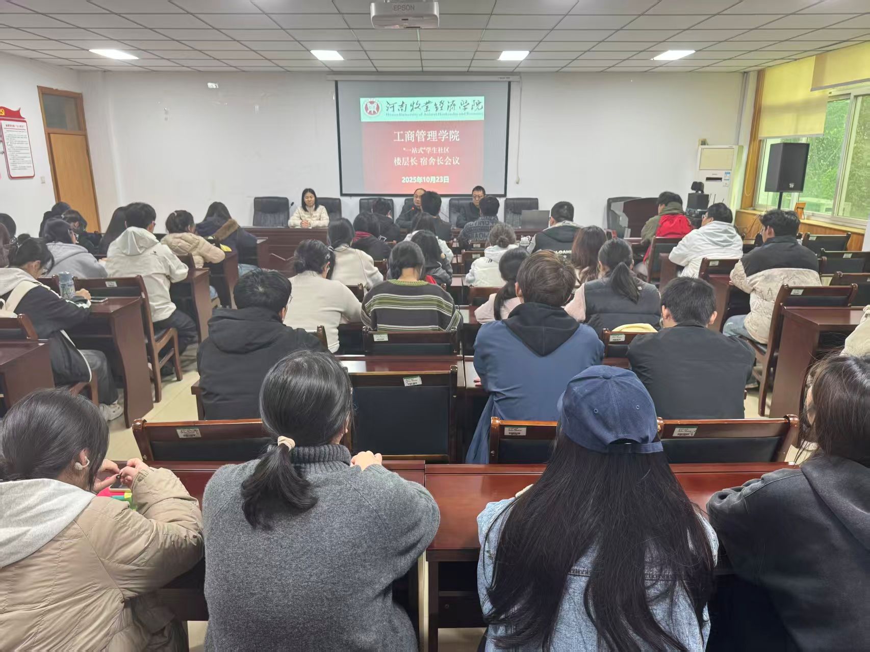 最后党委书记王国辉总结讲话:各楼层长及宿舍长要高度重视学生社区建设工作,坚持以立德树人为根本任务,充分发挥自身作用,明确任务,深入学生宿舍解决问题。他强调,高校宿舍长与楼层长是校园治理体系中的重要力量,其职责涵盖安全、卫生、学风、心理四大核心领域和其他职能。通过分工协作,他们不仅保障了学生生活秩序,更在思想引领、文化育人等方面发挥深远作用,与学校学生文明养成主题教育中全面提升学生思想道德素质、文明修养,构筑平安、整洁、优雅、有序的校园环境的目标相契合。