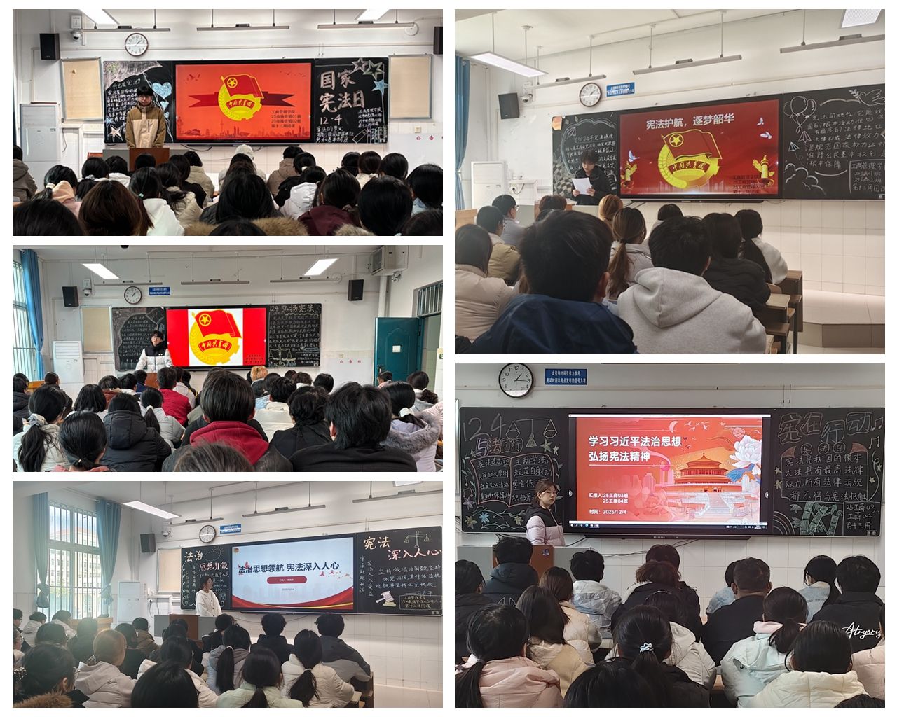 团课伊始,各班团支书围绕习近平法治思想的核心要义和习近平总书记关于宪法的重要论述展开讲解,结合全面依法治国取得的历史性成就,系统梳理了宪法的核心精神与时代价值。随后,团支书以“青年如何成为宪法的践行者与传播者”为切入点,抛出“新时代青年怎样维护宪法权威”“如何在日常生活中践行法治精神”等议题,引导同学们结合自身实际展开讨论。在自由讨论的环节中,同学们积极分享感悟,纷纷表示将自觉尊崇宪法、学习宪法、遵守宪法,以实际行动维护宪法尊严,争做宪法的忠实崇尚者、自觉遵守者和坚定捍卫者。团课最后,团支书作出总结,强调青年学子要将宪法精神内化于心、外化于行,在推进中国式现代化的进程中贡献法治青春力量。