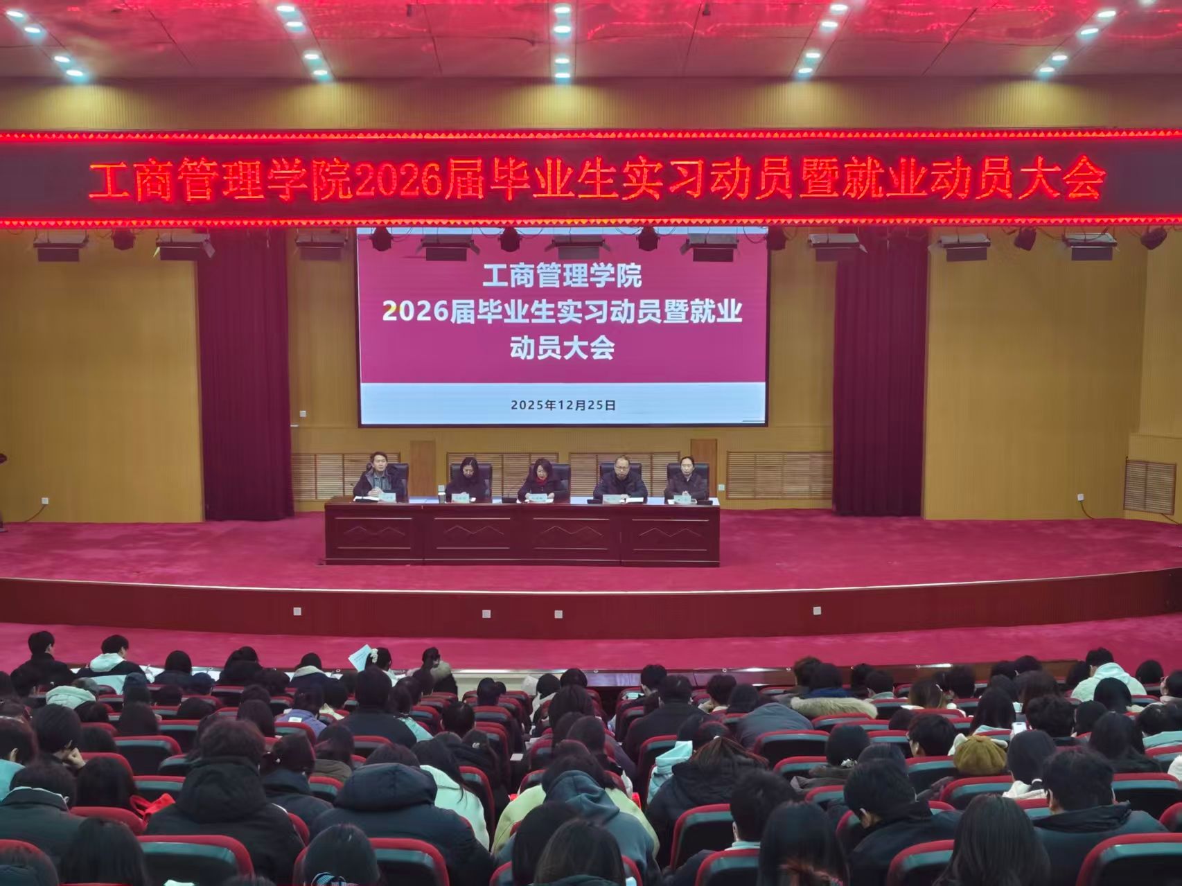 为切实做好2026届毕业生实习与就业工作,明确实习安排,加强就业指导与安全教育,2025年12月25日下午,WilliamHill中文在英才校区学术报告厅召开2026届毕业生实习动员暨就业动员大会。WilliamHill中文院长何丽娜、副院长张斐斐、陈科、闫超华、团委书记贾雪出席会议,毕业班全体辅导员及2026届毕业生共676人参会。大会由副院长闫超华主持。