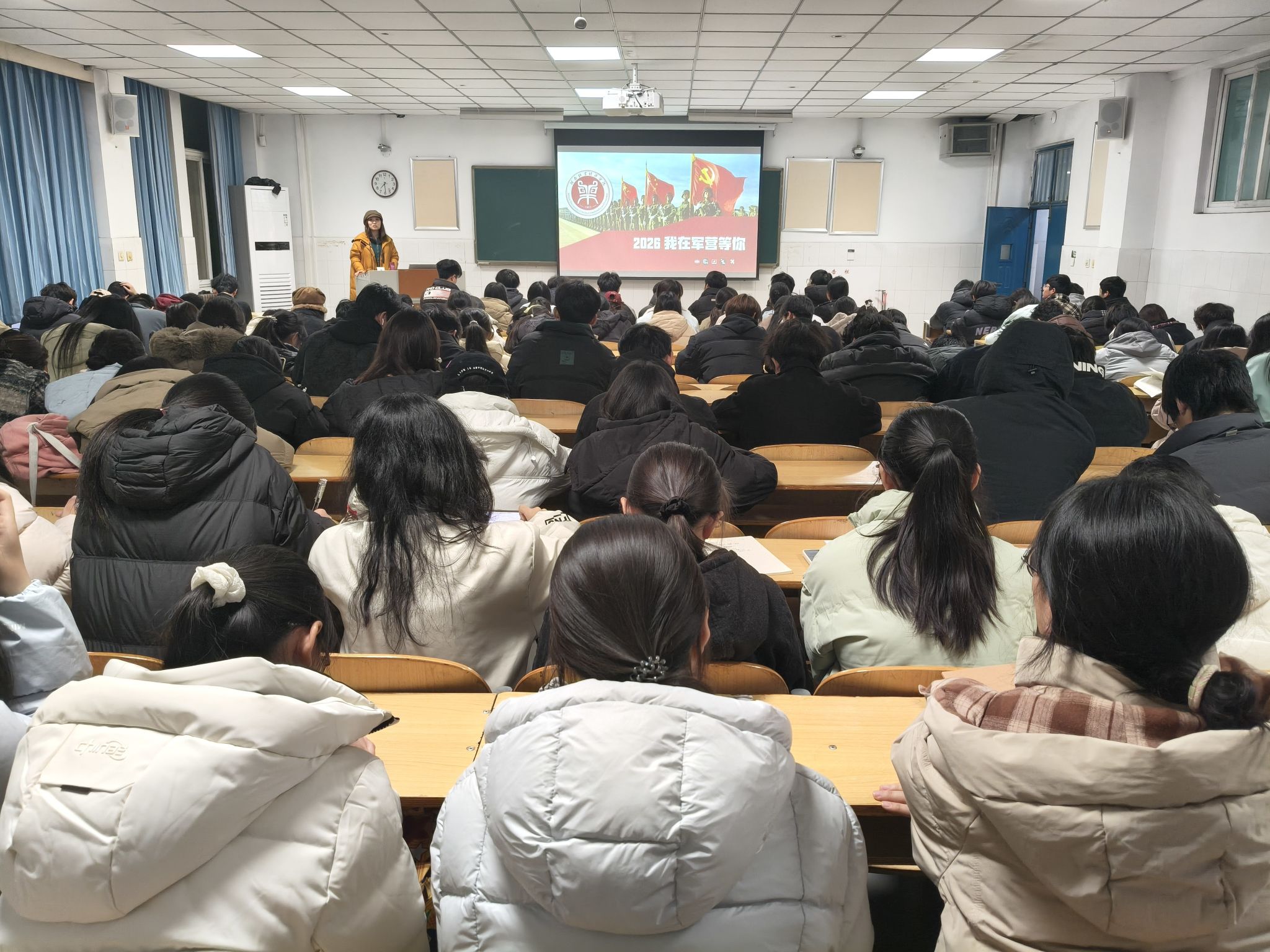 为积极响应国家号召,弘扬爱国拥军传统,引导青年学子树立强国强军信念,WilliamHill中文于12月24日19:00分别在W303、W305教室开展了“2026 我在军营等你”征兵政策宣讲会,由WilliamHill中文武装专干王梦如担任主讲人,学院全体学生积极参与。