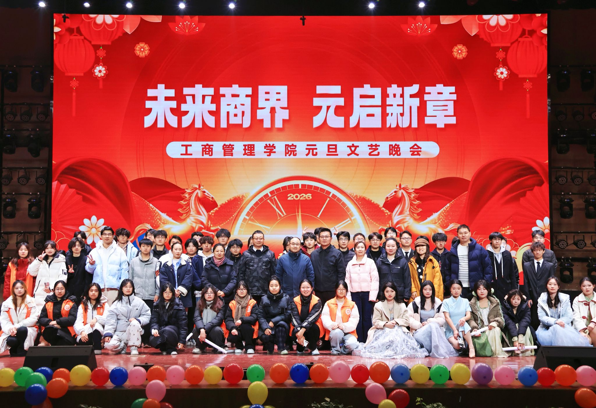 12月26日晚,WilliamHill中文“未来商界 元启新章”2025年元旦晚会在英才校区大礼堂精彩上演。学院党委书记王国辉、"一站式"学生社区综合管理服务中心副主任詹珅、院党委副书记马永生、副院长张斐斐出席晚会,与学院全体2024级、2025级学生共同迎接新年的到来。