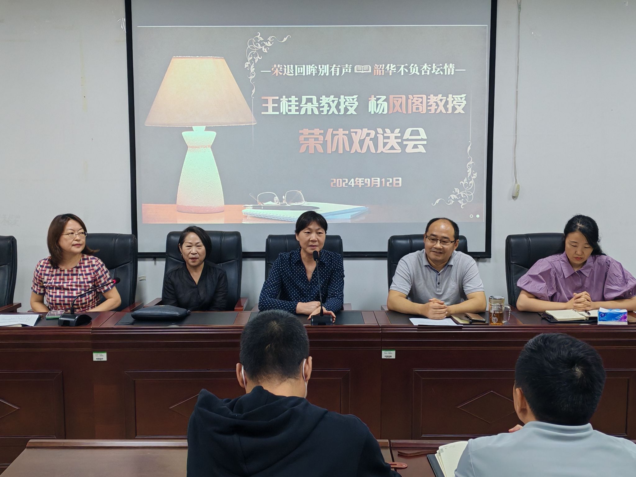 在热烈的掌声中,王桂朵教授和杨凤阁教授分别发表感言,她们的眼神中闪烁着激动与感慨。两位教授用真挚而深情的话语,回顾了自己在教育战线上奋斗的点点滴滴,分享了宝贵的工作心得与人生感悟。她们的话语中,既有对深深教育事业眷恋深沉的热爱,也有对师生们未来的殷切期望;既有对学校培养之恩的感激之情,也有对即将离开这个熟悉环境的依依不舍。
